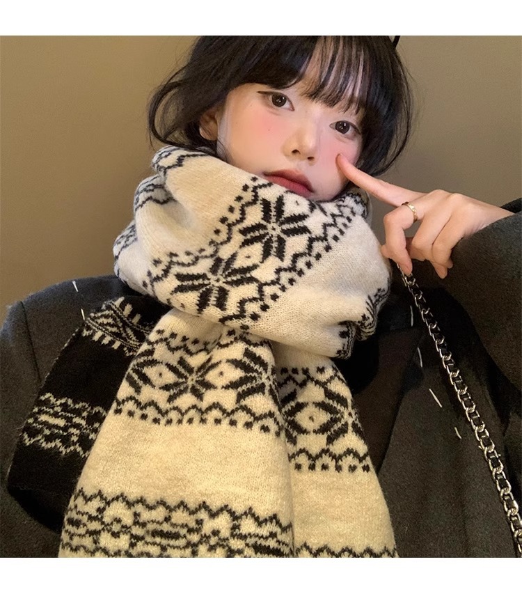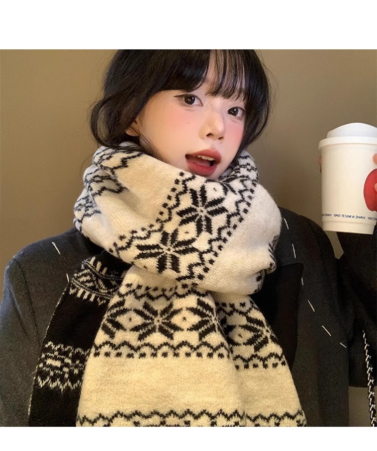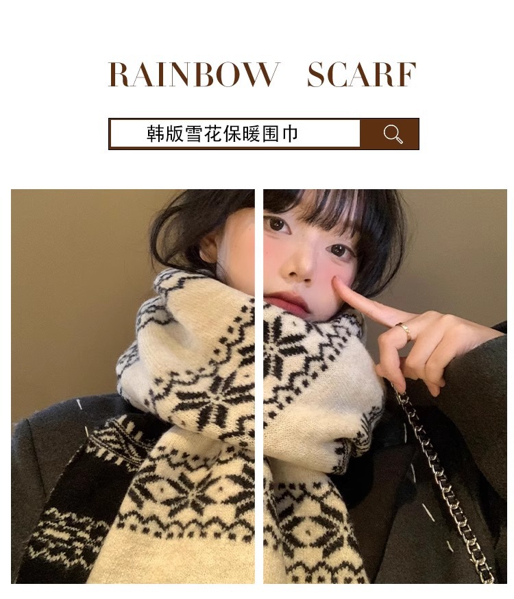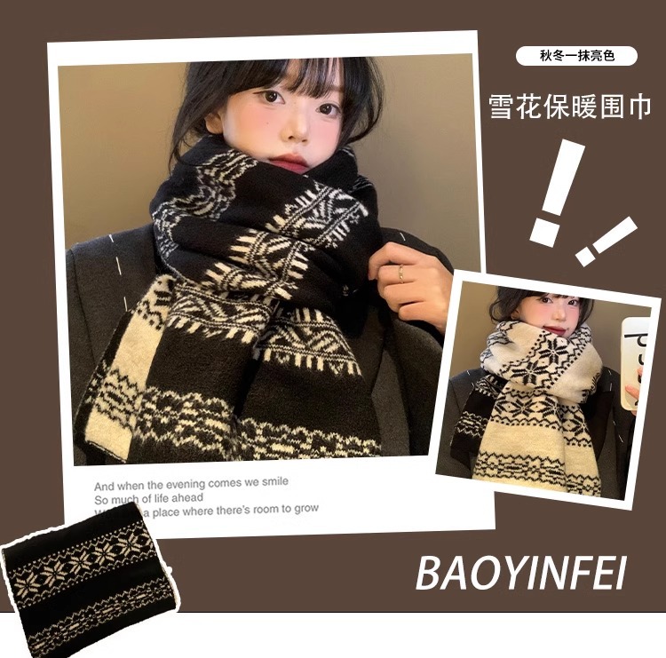 24 겨울 새 눈송이 양면착용 여성 가을 · 겨울 한국식 분위기 두꺼운 따뜻한 니트 스카프 고급스토어 가기