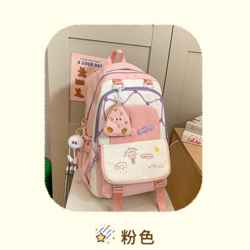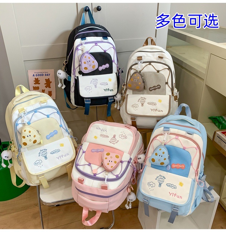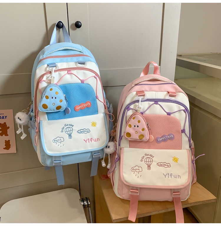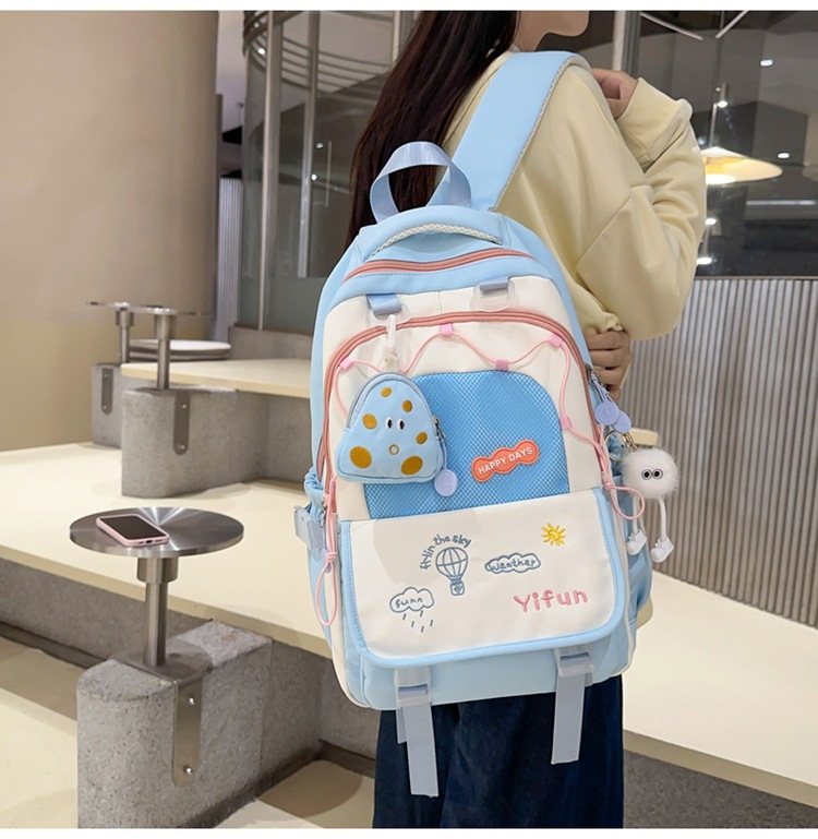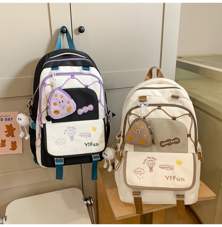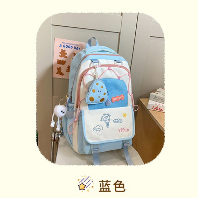 인 아카데미 스타일 대비 컬러 스쿨백 귀여운 경량 대용량 소녀 올 매치 백팩 주니어 고등학교 학생 스쿨백스토어 가기