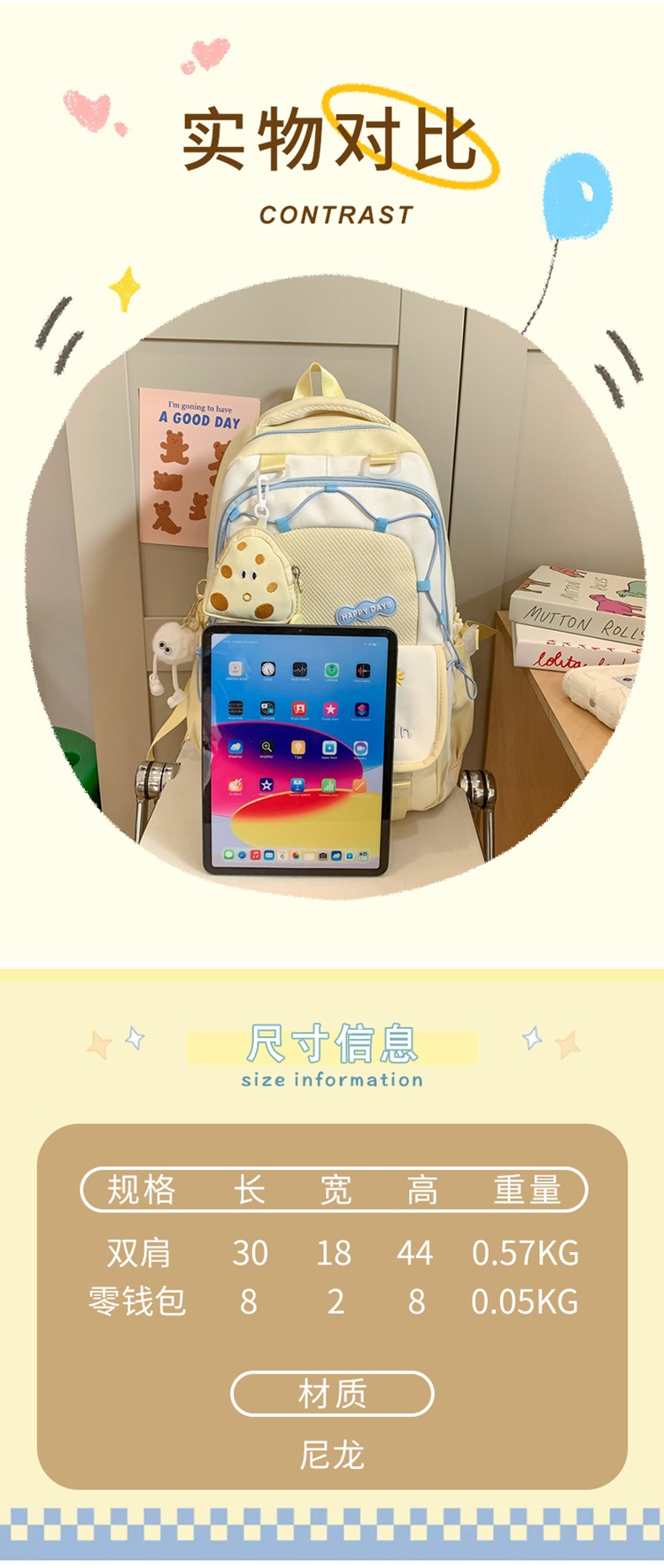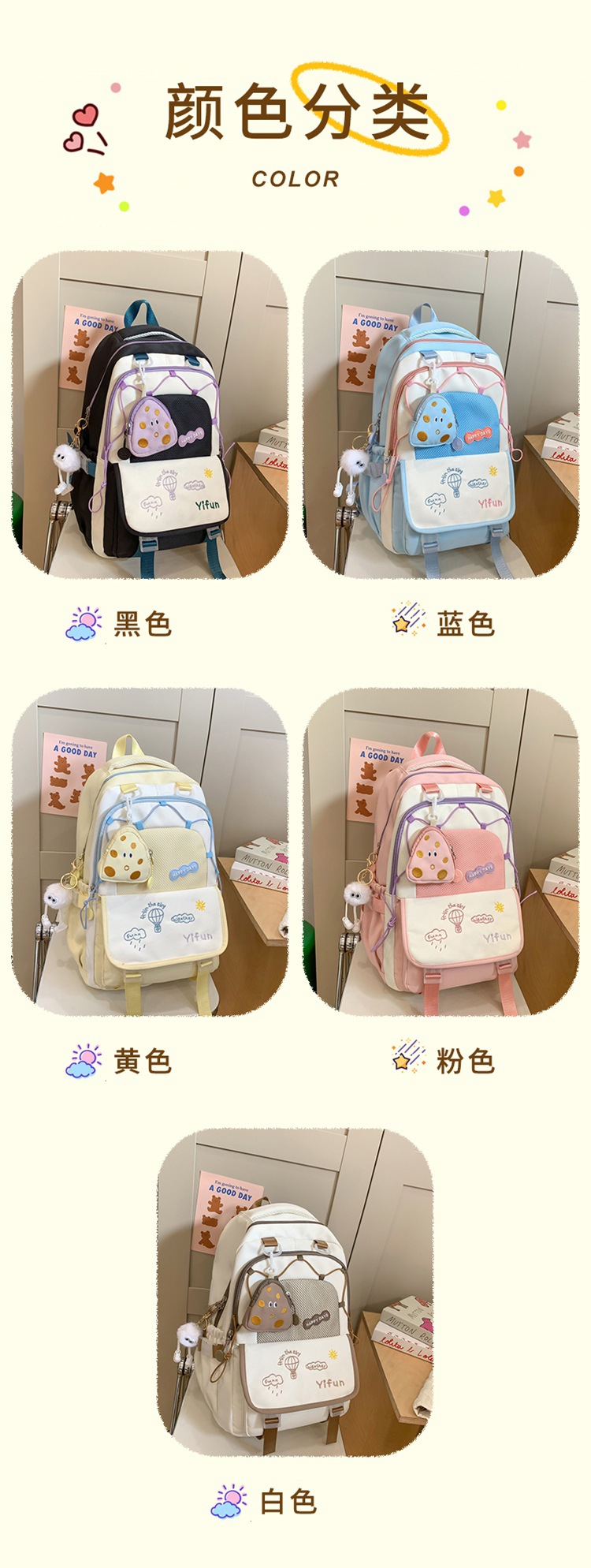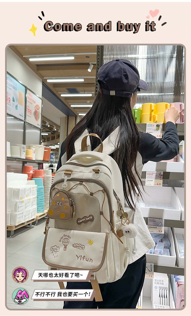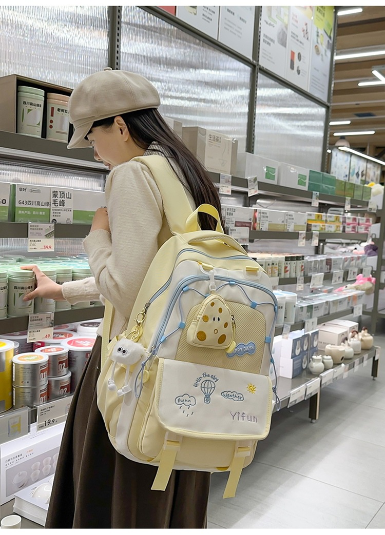 인 아카데미 스타일 대비 컬러 스쿨백 귀여운 경량 대용량 소녀 올 매치 백팩 주니어 고등학교 학생 스쿨백스토어 가기