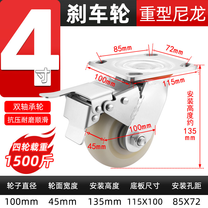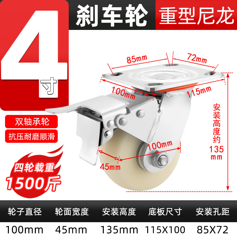 • 4인치 범용 브레이크 휠 [새 업그레이드] [무거운 두꺼운 버전]