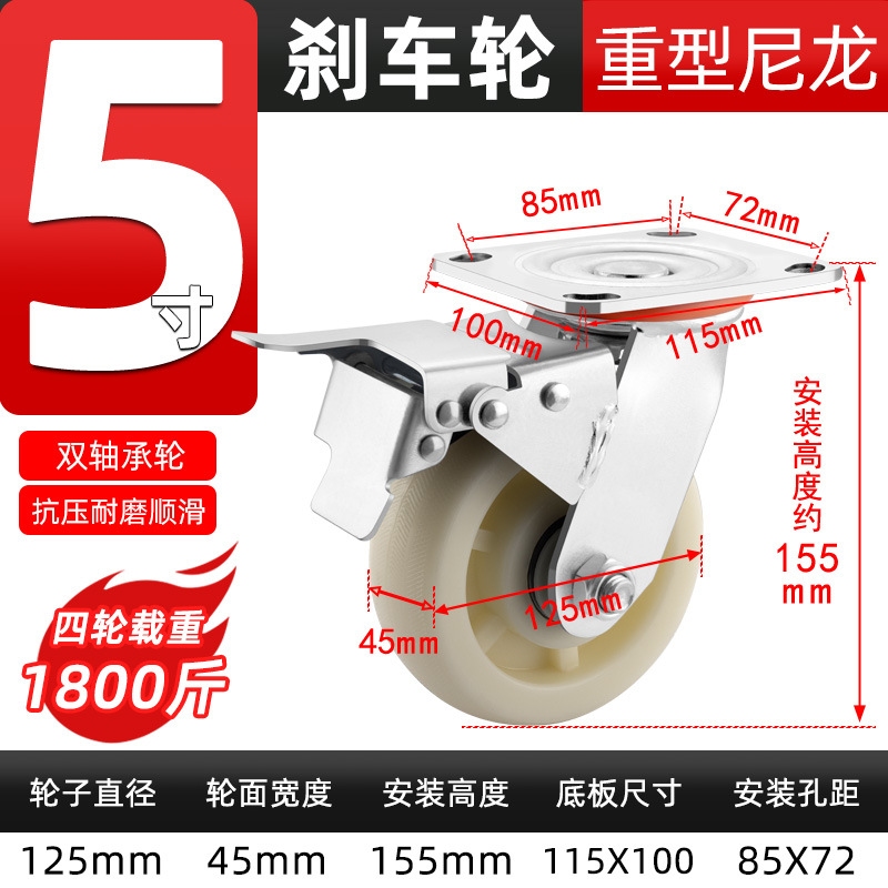 • 5인치 범용 브레이크 휠 [새 업그레이드] [무거운 두꺼운 버전]