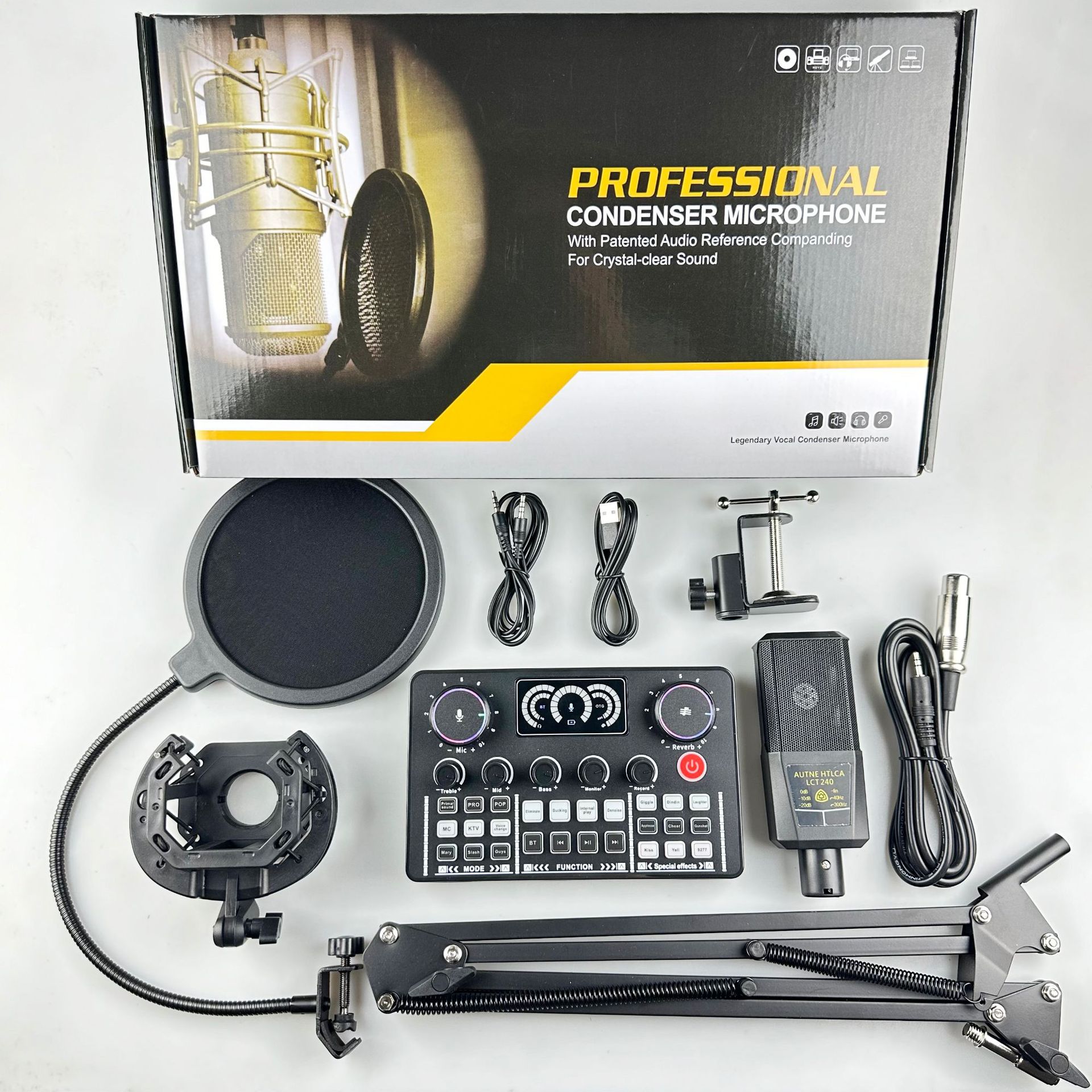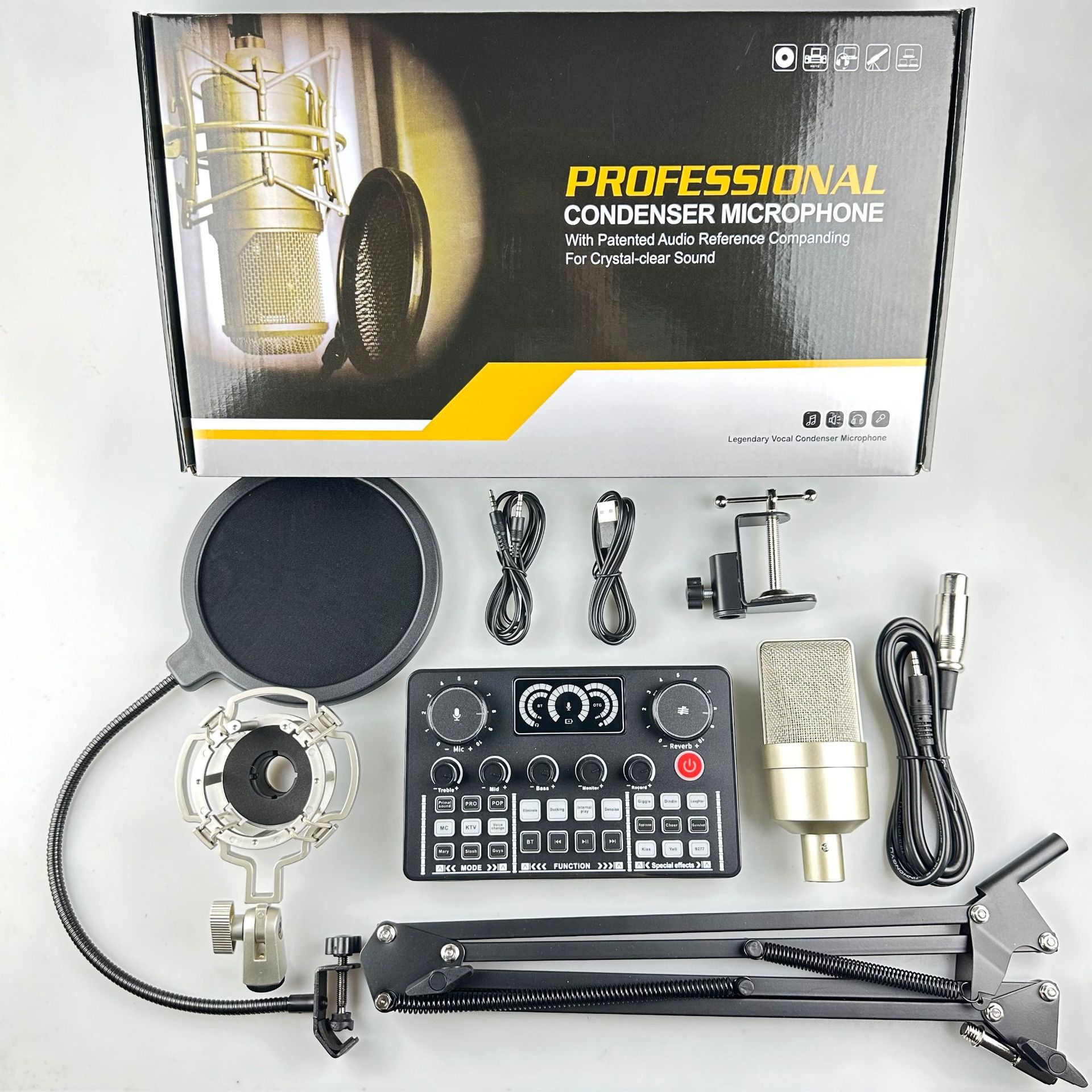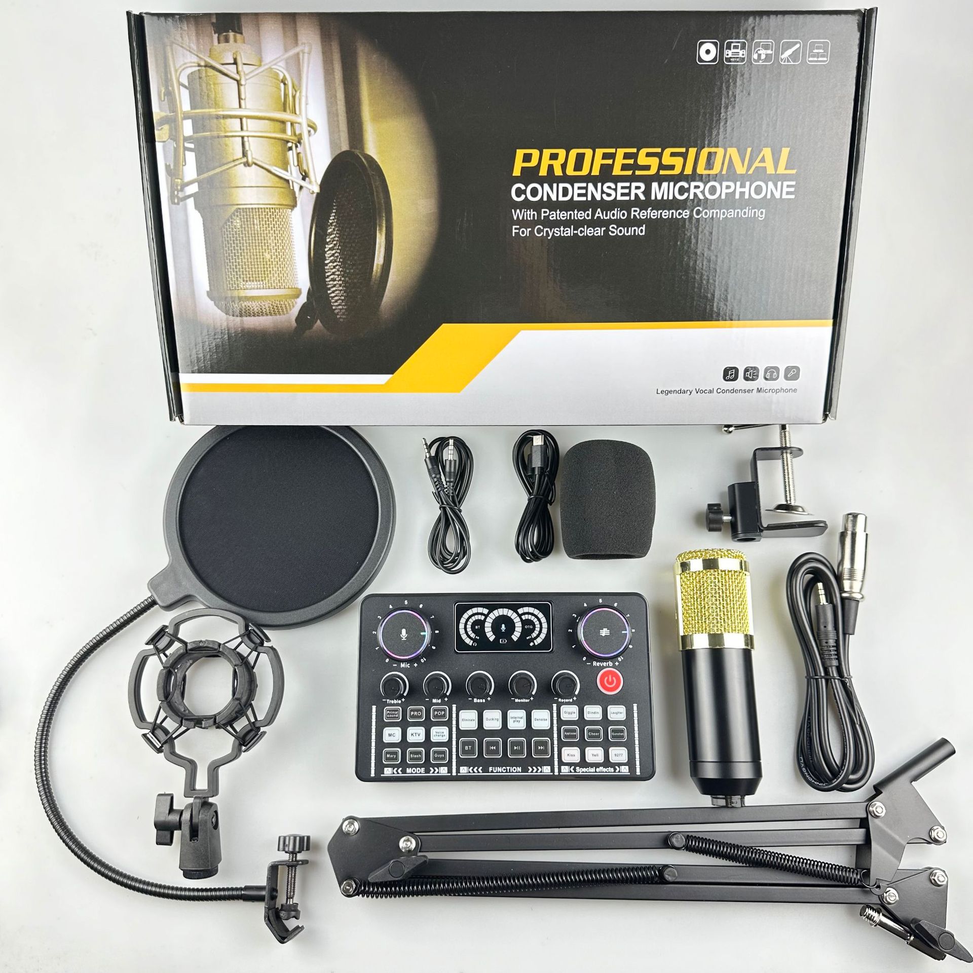 국경 간 V98 영어 전문 라이브 방송 사운드 카드 BM800 마이크 전문 오디오 장비 믹서 사운드 카드 세트