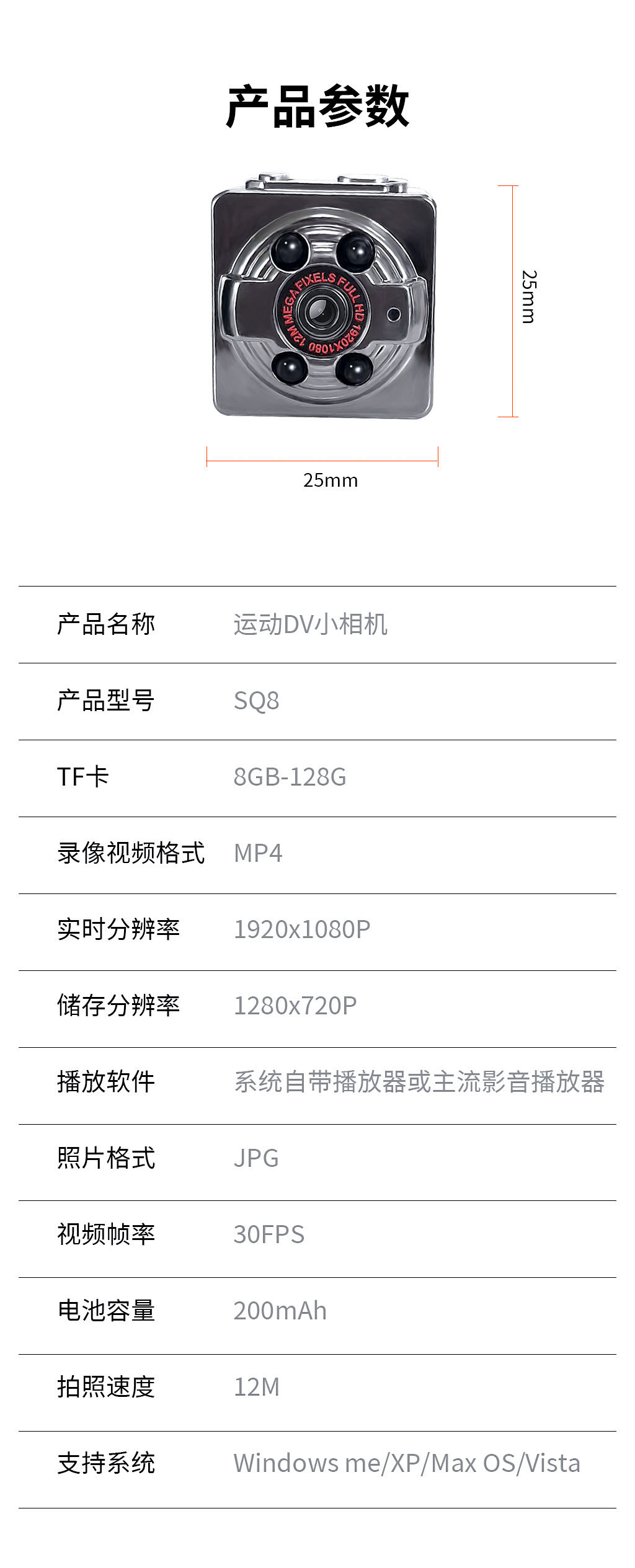 크로스보더 SQ8 고화질 소형 카메라 1080p 카메라 야간 투시 스포츠 DV 소형 카메라 운전 기록기 겸용스토어 가기
