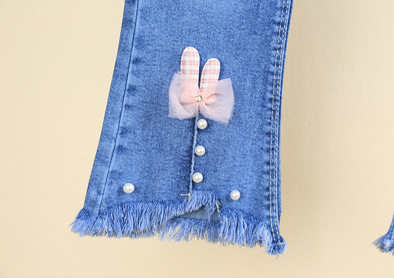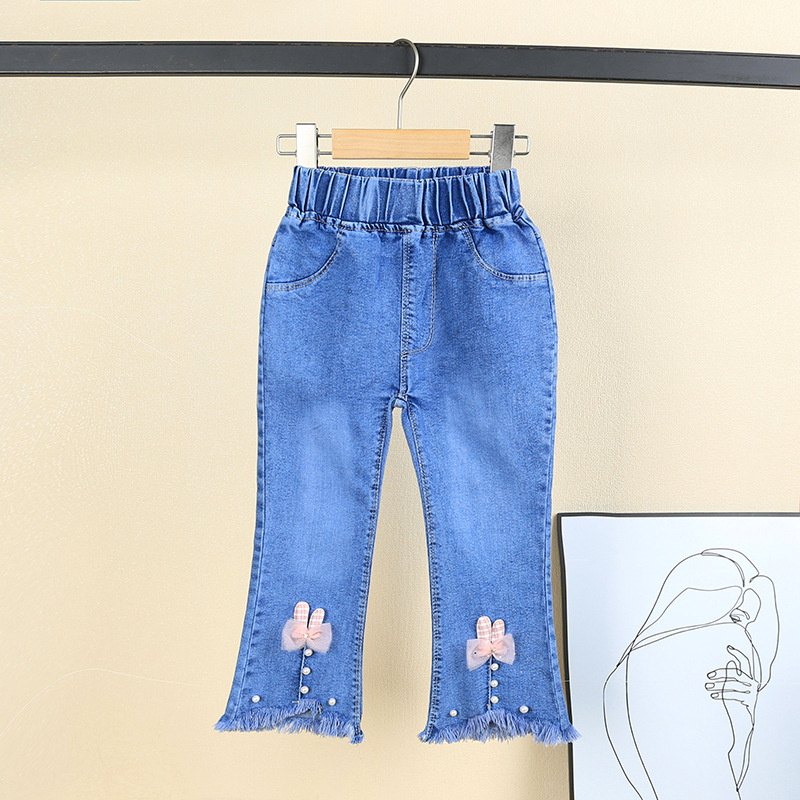 아동복 걸스 데님 바지 봄과 가을 새로운 패션 웨스턴 스타일 올 매치 슬림 핏 중대형 어린이 외주 바지스토어 가기