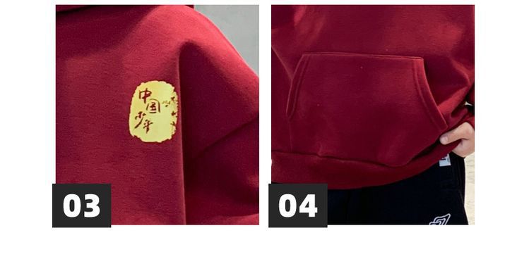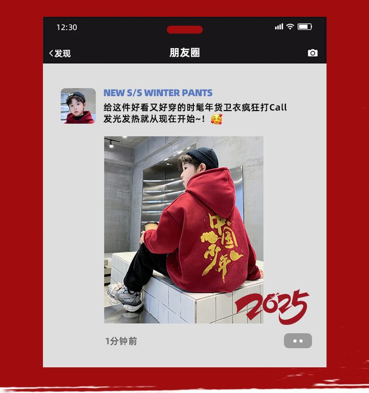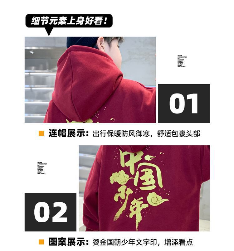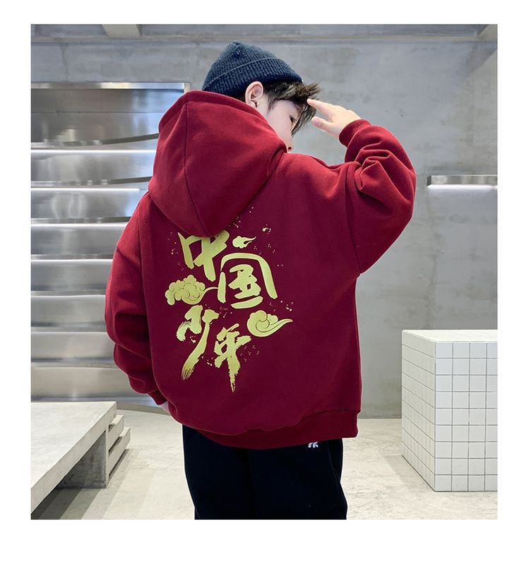 중국 스타일 소년의 겨울 기모 후드 스웨트 큰 어린이 빨간 새해 옷 머리카락을위한 두꺼운 올 매치 탑스토어 가기