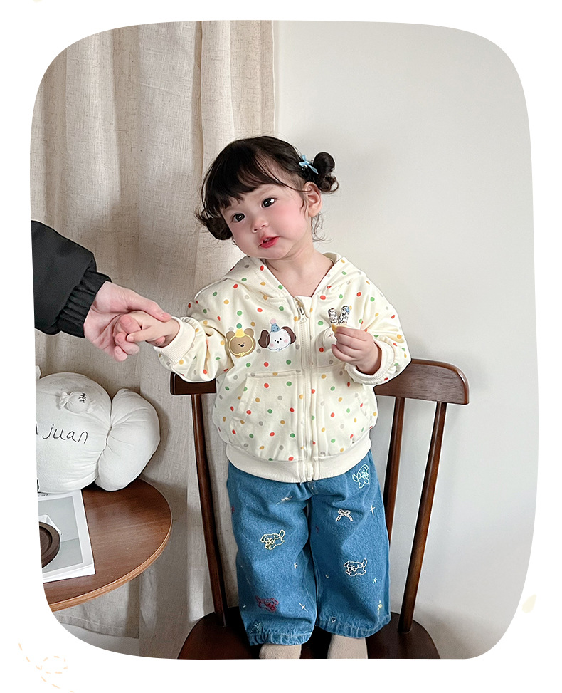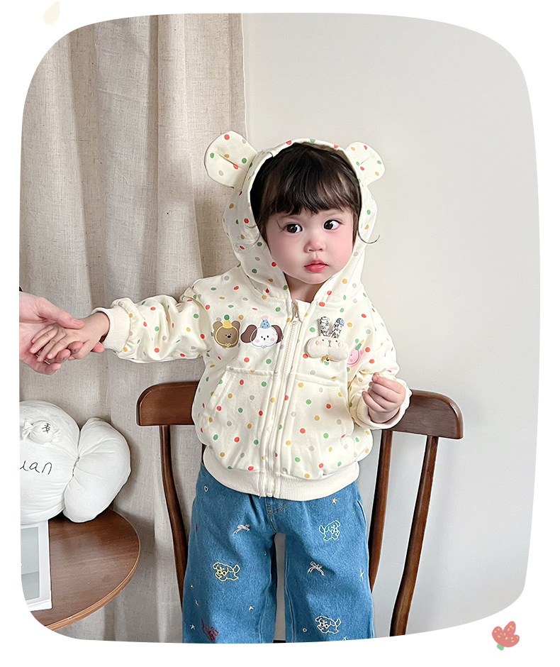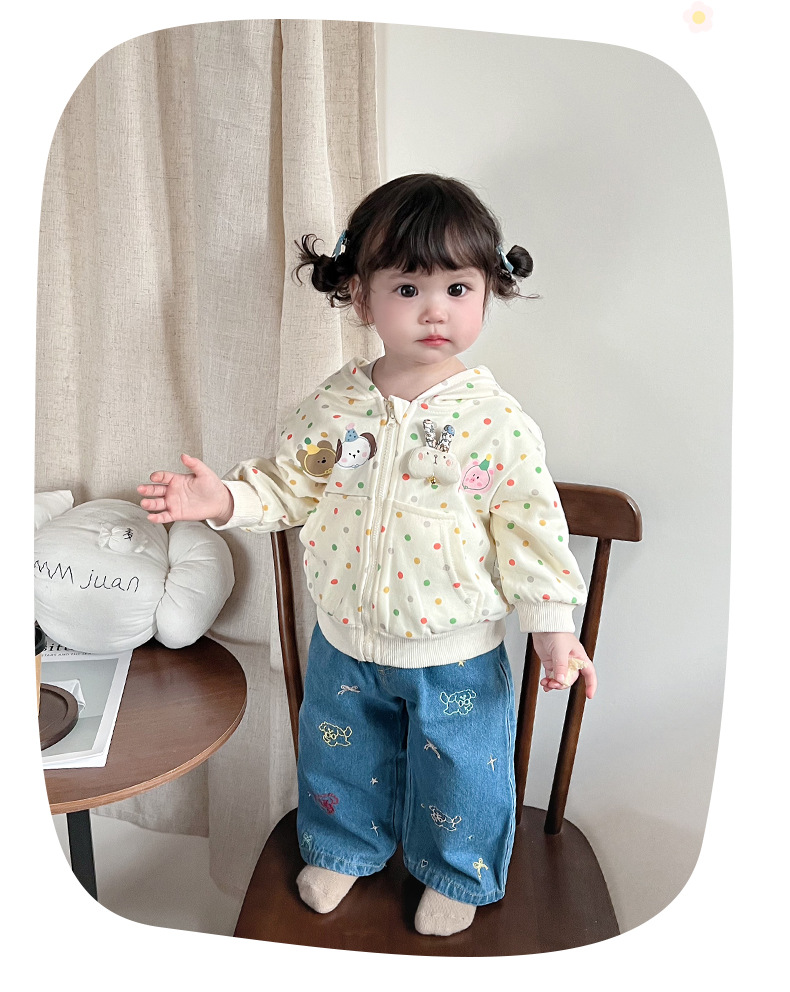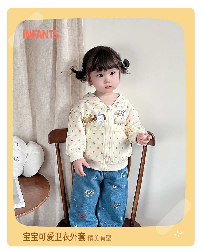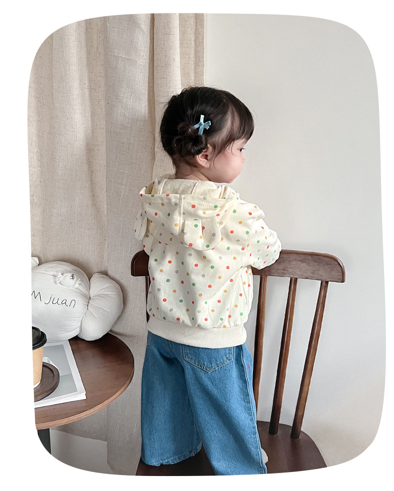 어린이 후드 스웨터 봄과 가을 새로운 여성 아기 한류 도트 카디건 5010 서양식 어린이 서양식 코트스토어 가기