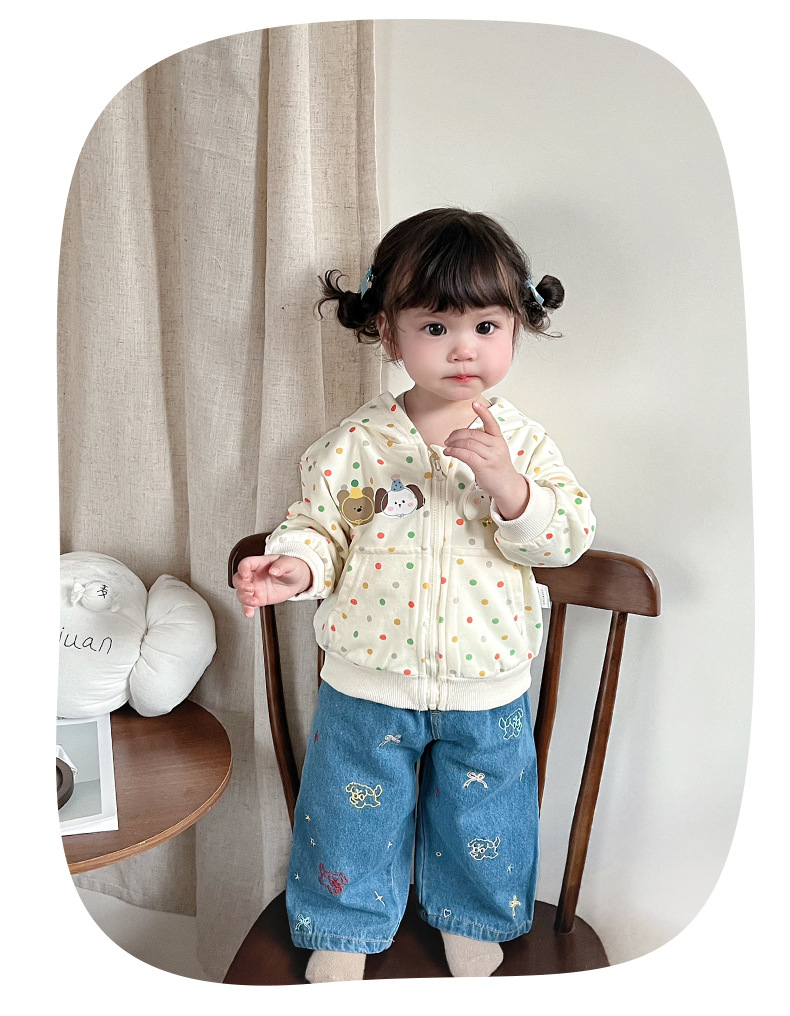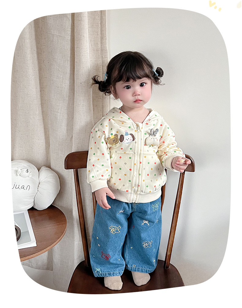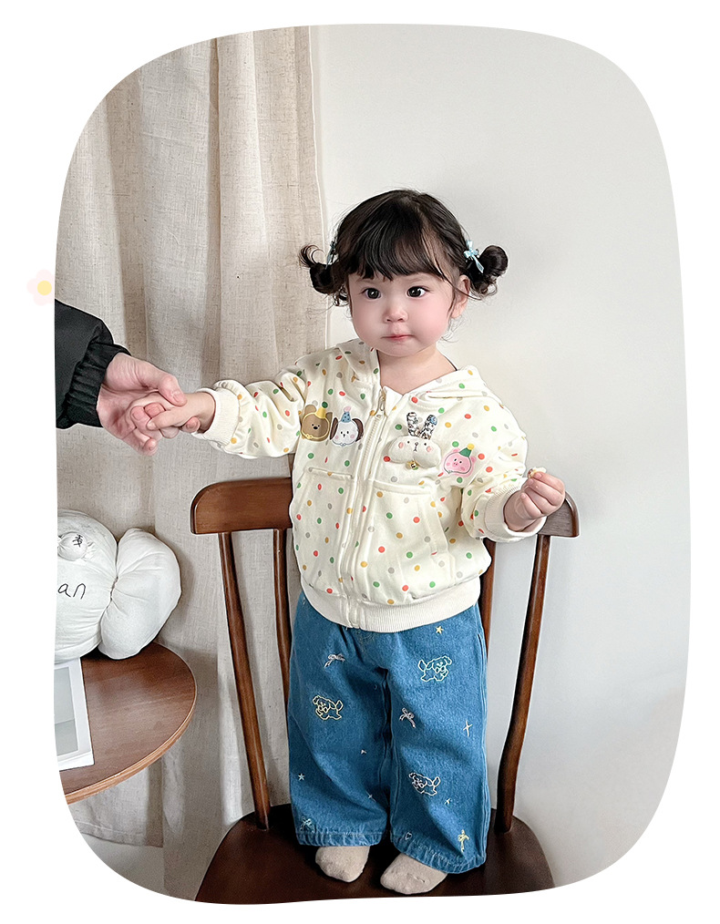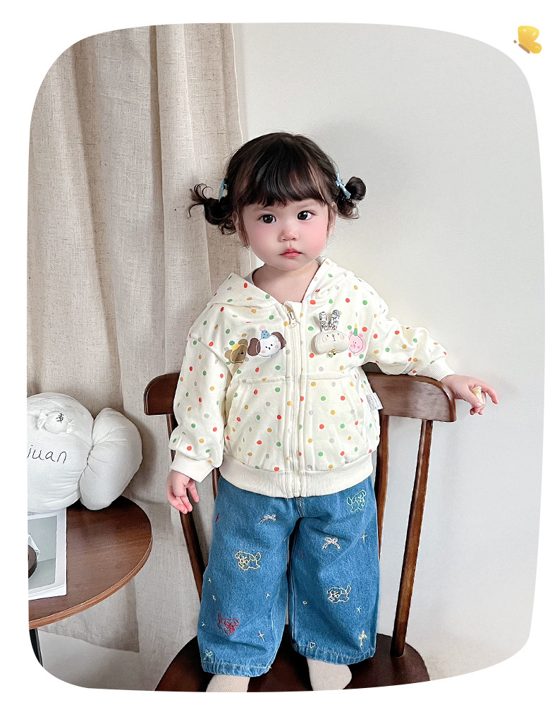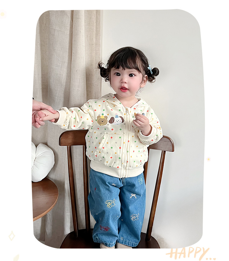 어린이 후드 스웨터 봄과 가을 새로운 여성 아기 한류 도트 카디건 5010 서양식 어린이 서양식 코트스토어 가기