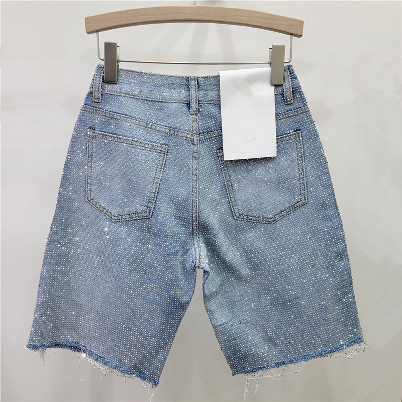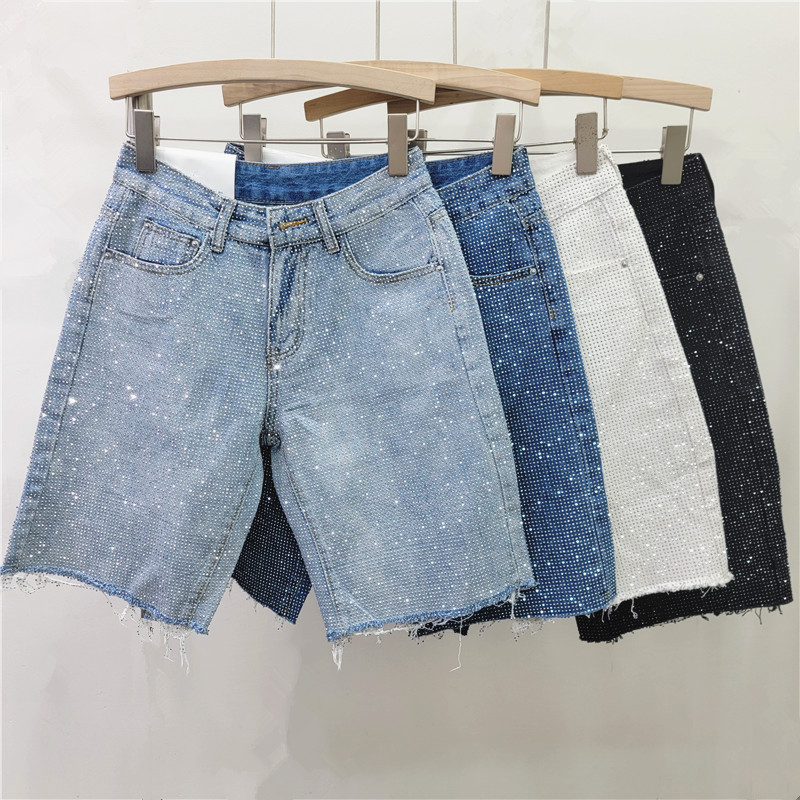 유럽식 핫 풀 다이아몬드 버 청바지 여성 반바지 스트레이트 바지 2025 봄과 여름 새로운 하이 허리 올 매치 바지스토어 가기