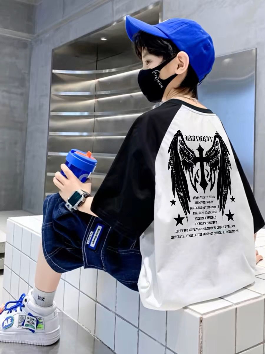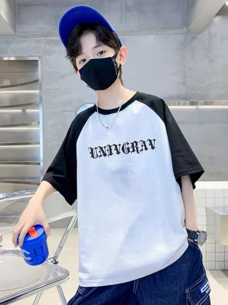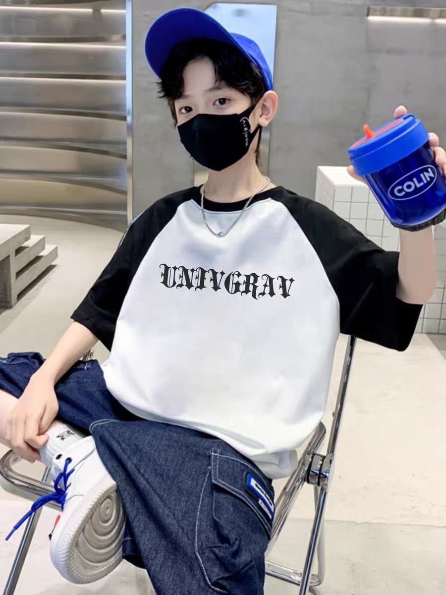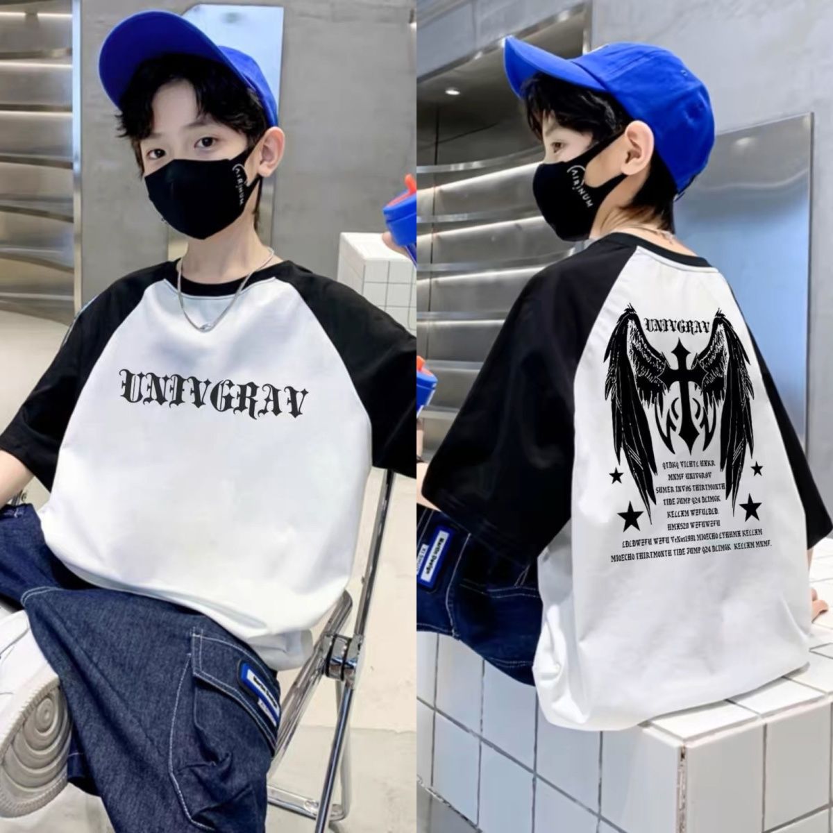 220g 헤비 코튼 아동복 2024 Raglan 반팔 티셔츠 여름 신상 어린이 느슨한스토어 가기