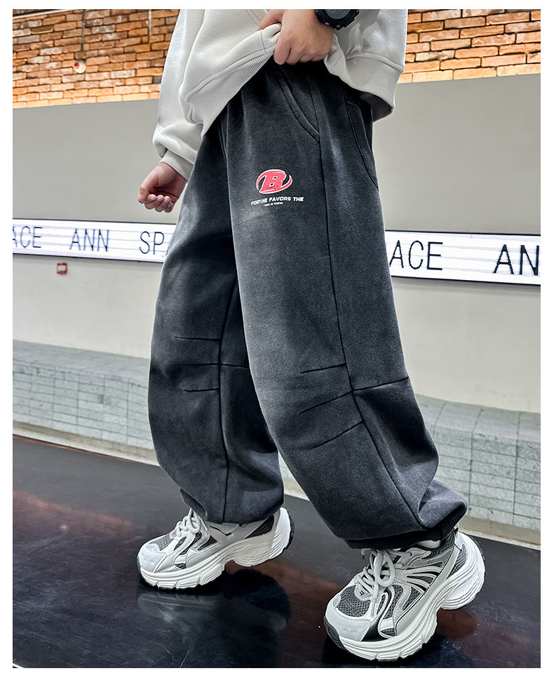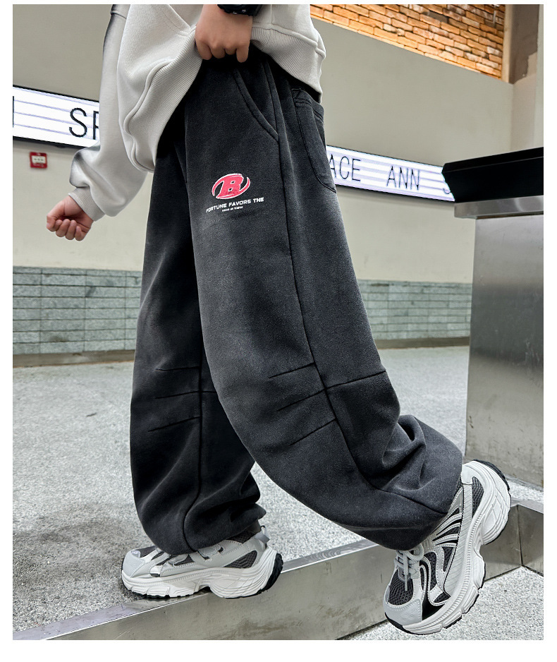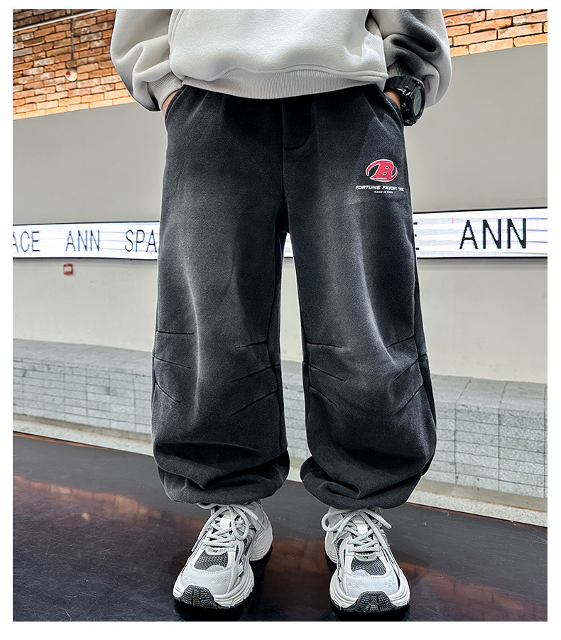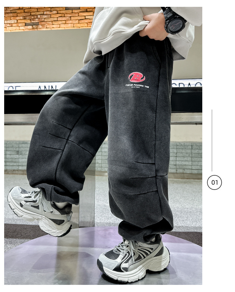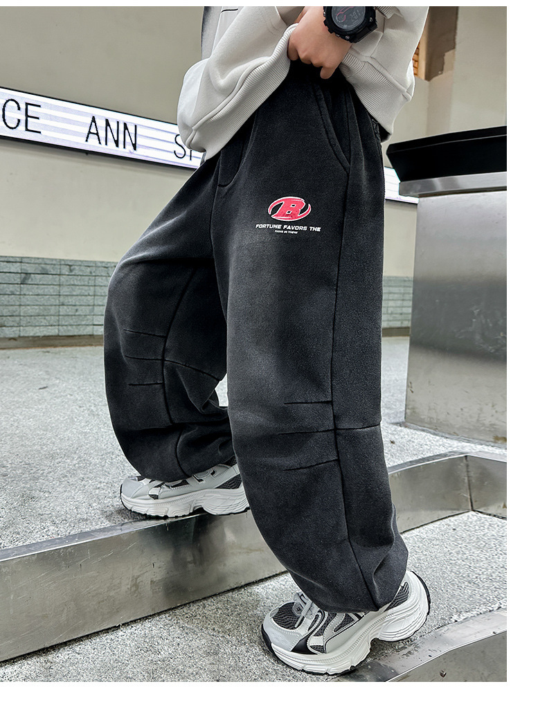 소년 기모 바지 겨울 원피스 양털 운동복 소년 느슨한 스포츠 바지 어린이 따뜻한 다리 바지 한 판 차오