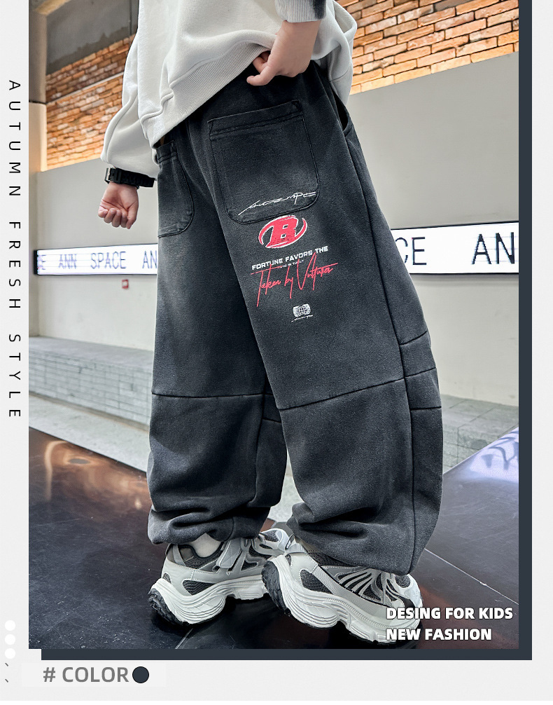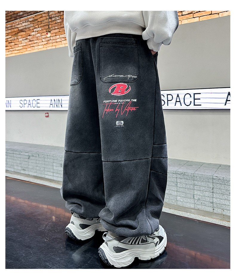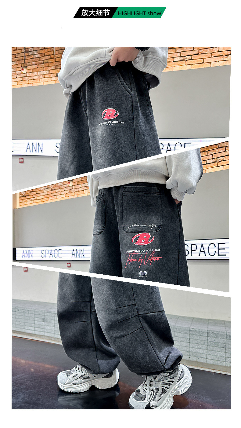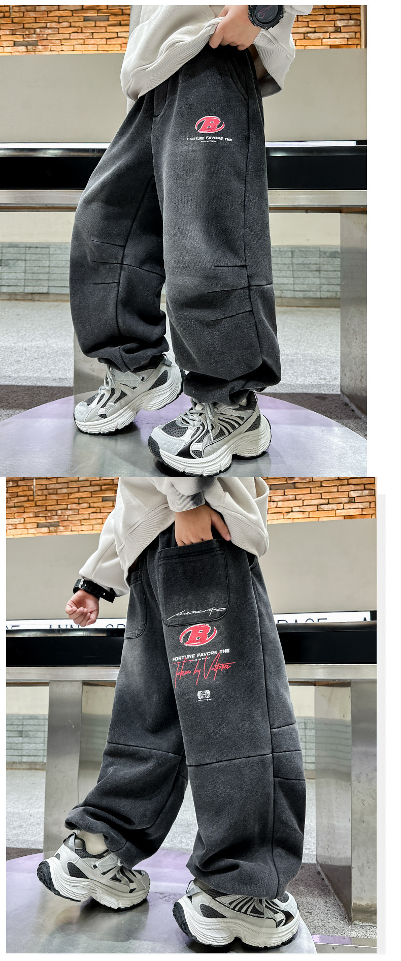 소년 기모 바지 겨울 원피스 양털 운동복 소년 느슨한 스포츠 바지 어린이 따뜻한 다리 바지 한 판 차오