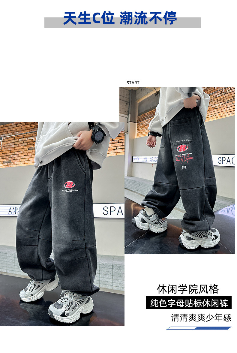 소년 기모 바지 겨울 원피스 양털 운동복 소년 느슨한 스포츠 바지 어린이 따뜻한 다리 바지 한 판 차오스토어 가기