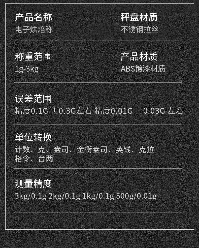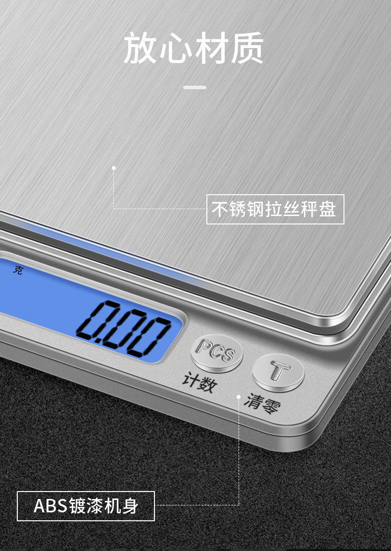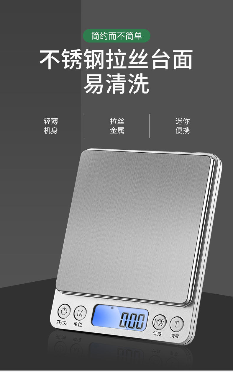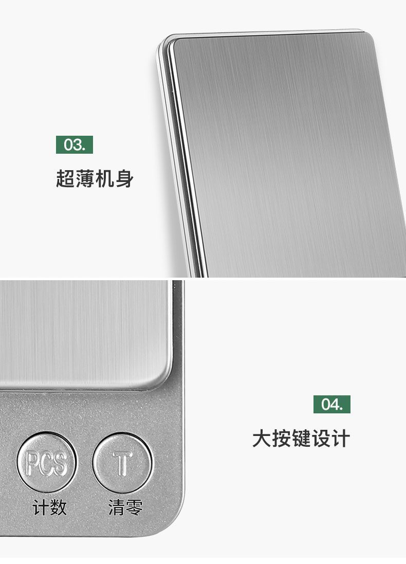 • 브러시드 스테인리스 스틸 패널 3kg /0,1g(트레이 + AA 배터리 2개 포함)