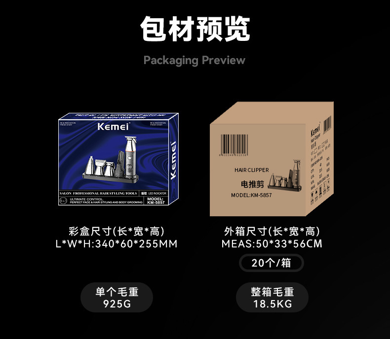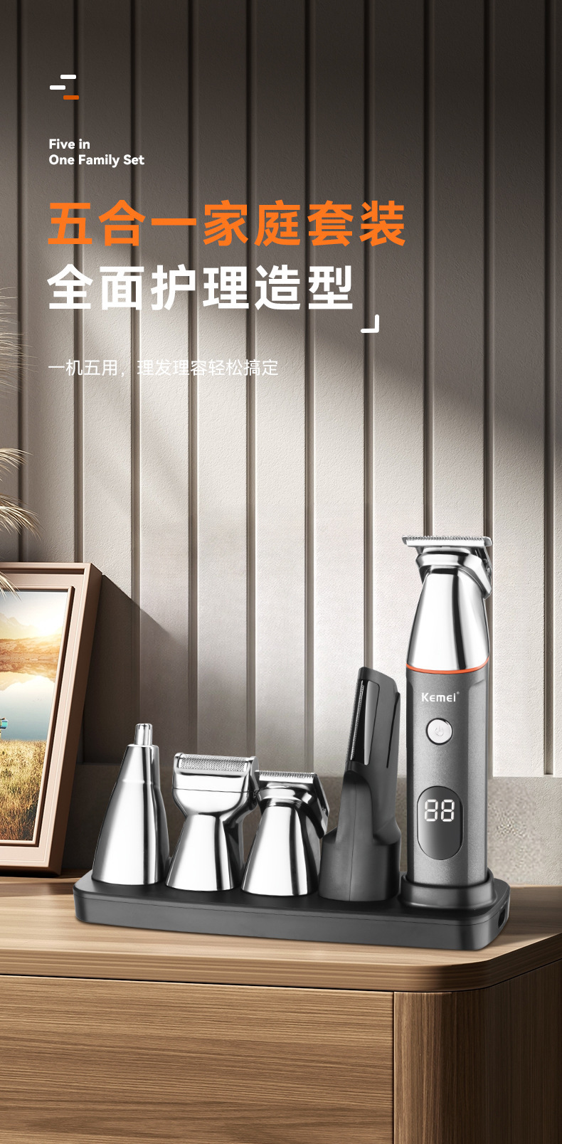 코미 KM-5857 헤어 클리퍼 다기능 전기 면도 헤드 5 in 1 면도기 면도 전기 클리퍼 세트