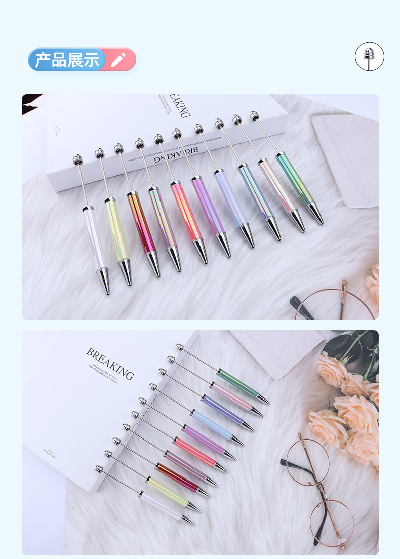 Diy 승화 전기 도금 구슬 펜 간단한 7 색 구슬 귀여운 펜 맞춤형 비즈니스 사무실 선물 펜스토어 가기