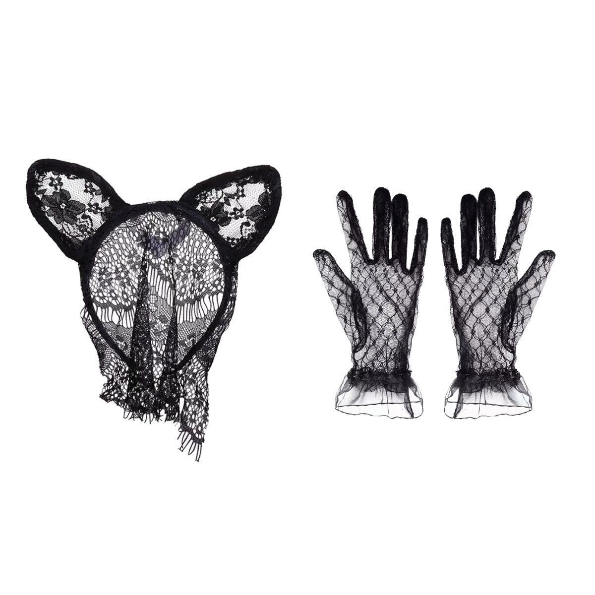 검은 섹시한 고양이 귀 헤어 밴드 여성의 레이스 마스크 아이 마스크 얼굴 메시 베일 헤어 액세서리 할로윈 헤드웨어
