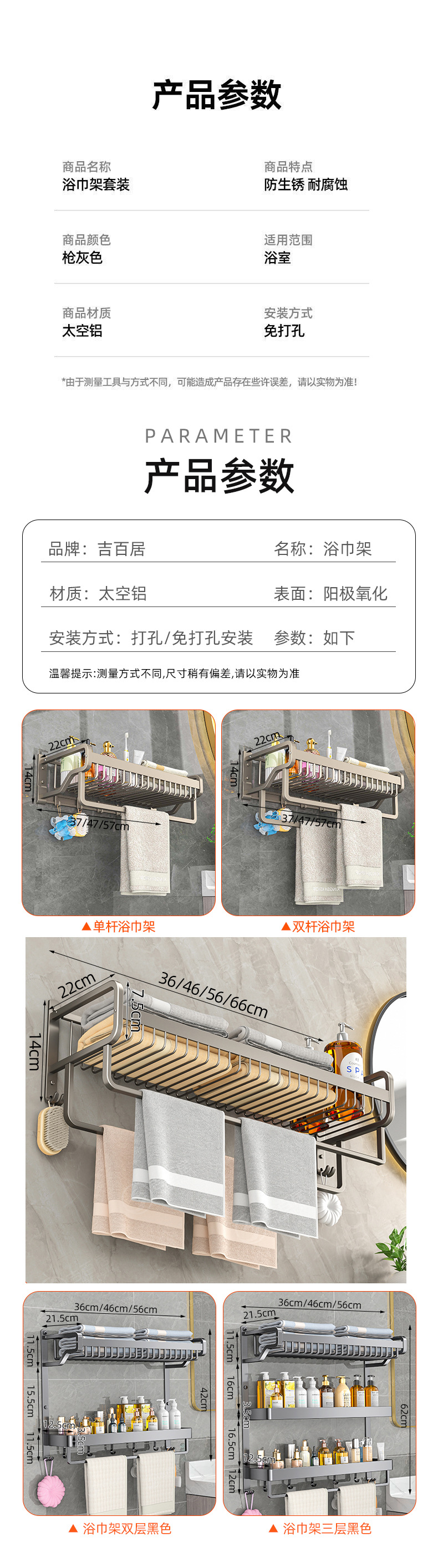 소스 공장 목욕 타월 랙 화장실 목욕 비 천공 화장실 랙 벽 교수형 공간 알루미늄 선반스토어 가기