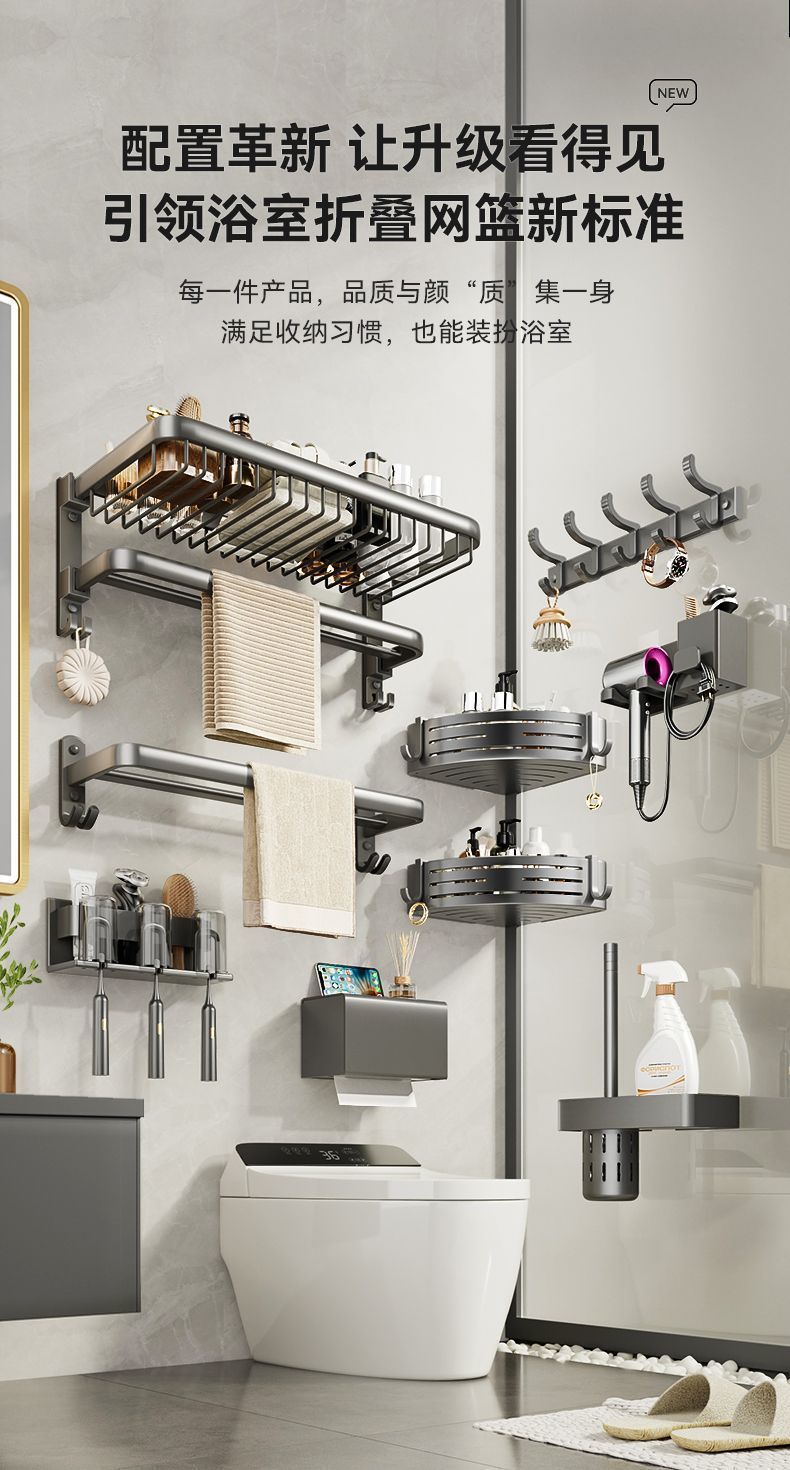 • 56CM-건그레이-더블로드 욕실수납선반 [새 업그레이드]