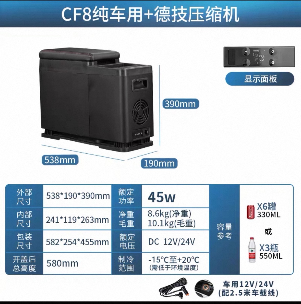 얼음 호랑이 압축기 차 냉장고 팔걸이 상자 8L 오디세이, GL8, 비아노 및 기타 MPV 적용 가능