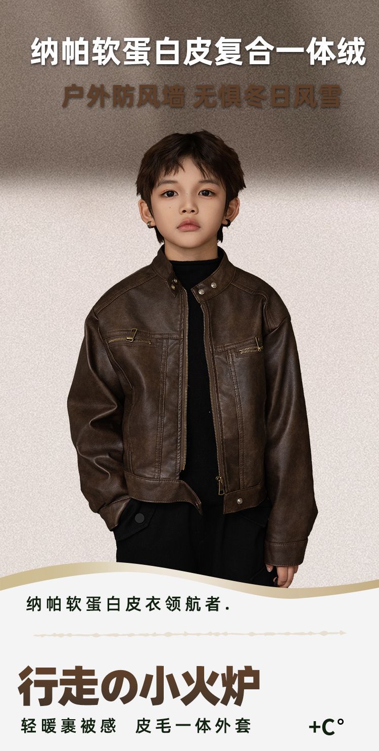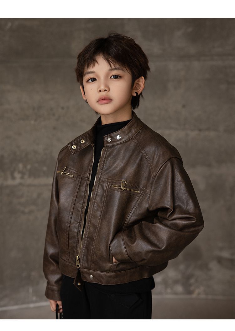아동복 남아용 가죽 자켓 가을 겨울 신상 아동용 재킷 상의 두꺼운 멋진 스타일 해외 도매 트렌드