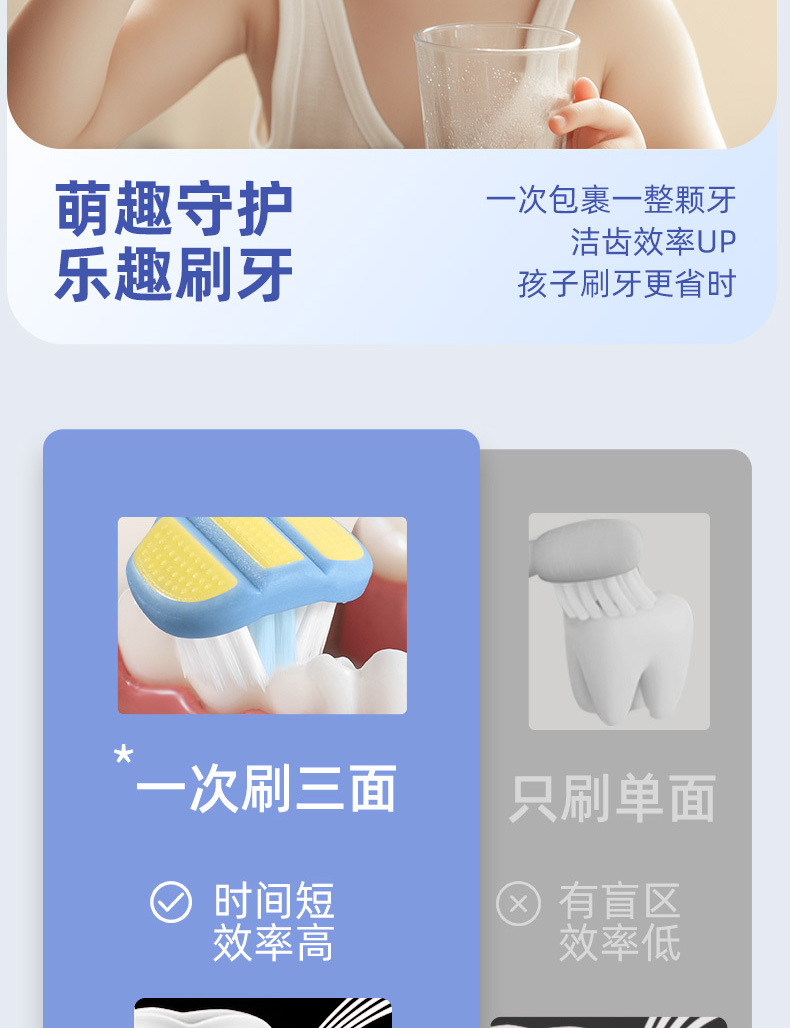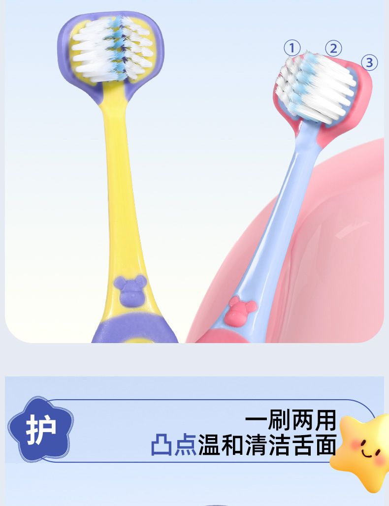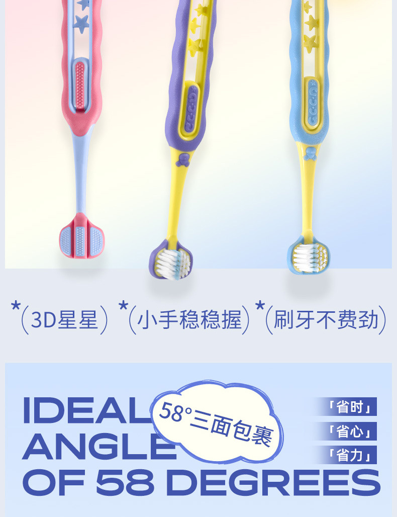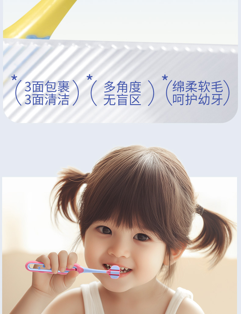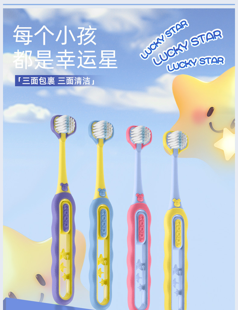 [3 면 4 형 래핑형] 어린이 칫솔 연약한 머리 초정밀 4-12 세 아기, 어린이 대형 아동용 칫솔스토어 가기