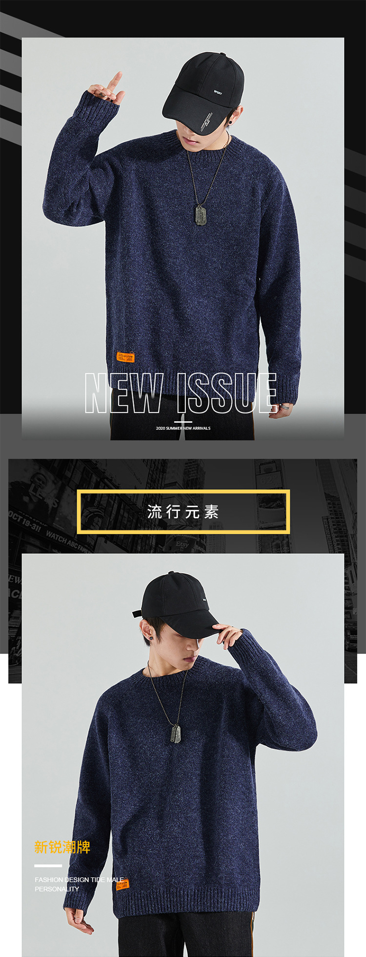 毛衣男秋冬季加厚打底针织衫日系复古宽松韩版潮牌男士外套