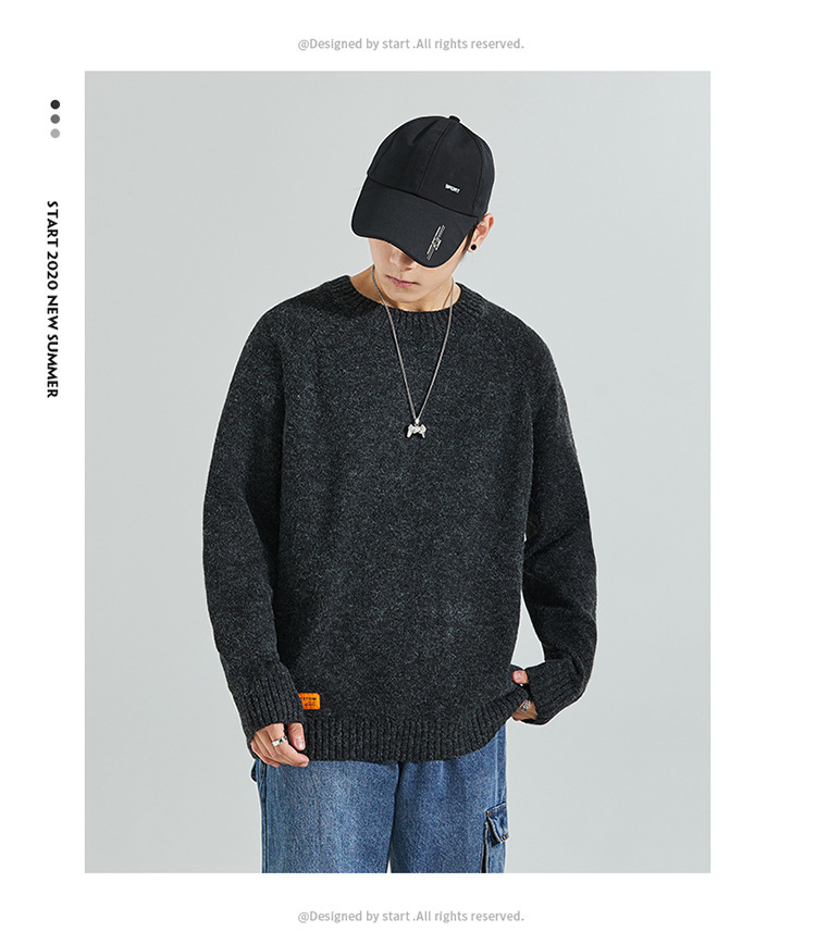 스웨터 남자 가을과 겨울 두꺼운 베이스 니트웨어 일본식 레트로 느슨한 한국 스타일 트렌디 브랜드 남성용 코트 스웨터