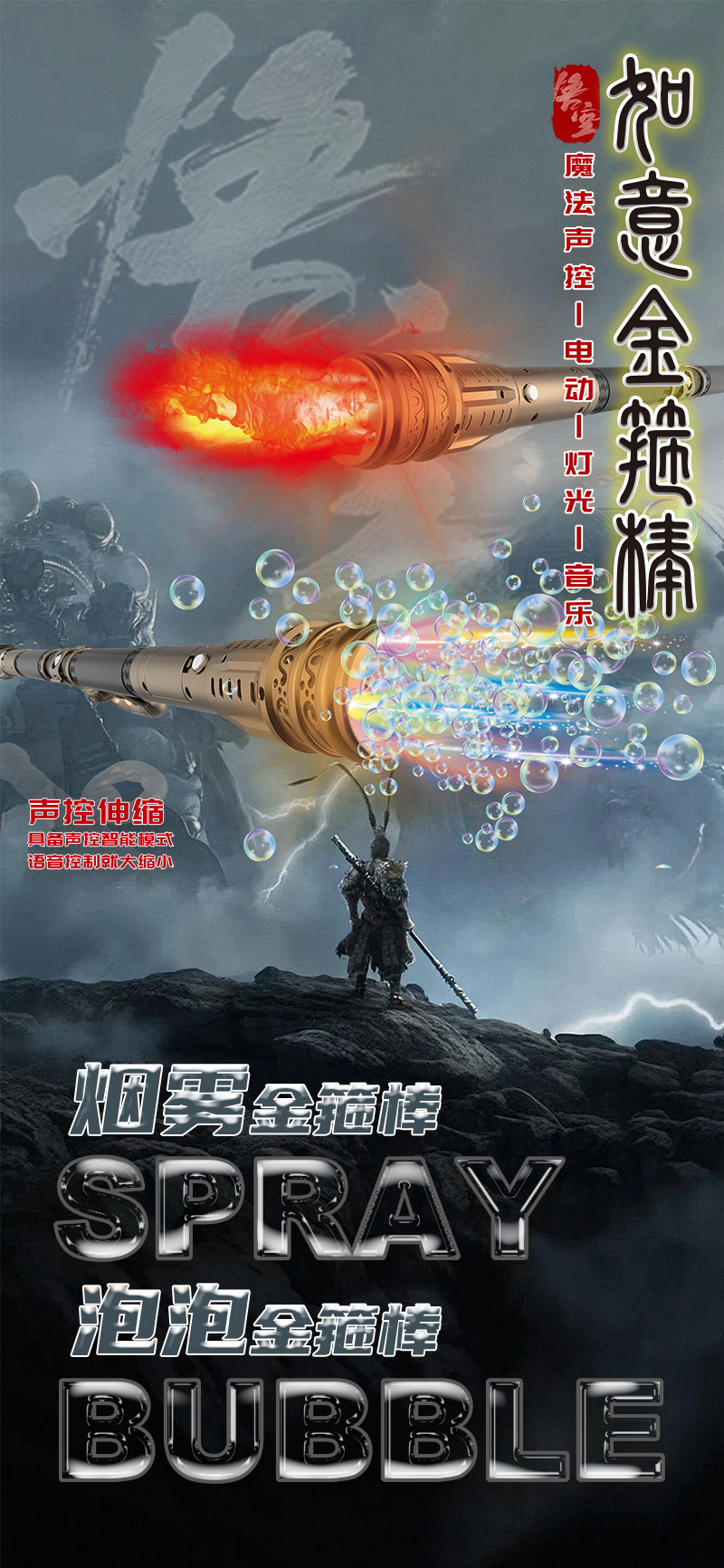 음성 활성화 퍼핑 개폐식 Ruyi Golden Hoop 어린이 장난감 Wukong Monkey King Magic Rotating Bubble스토어 가기