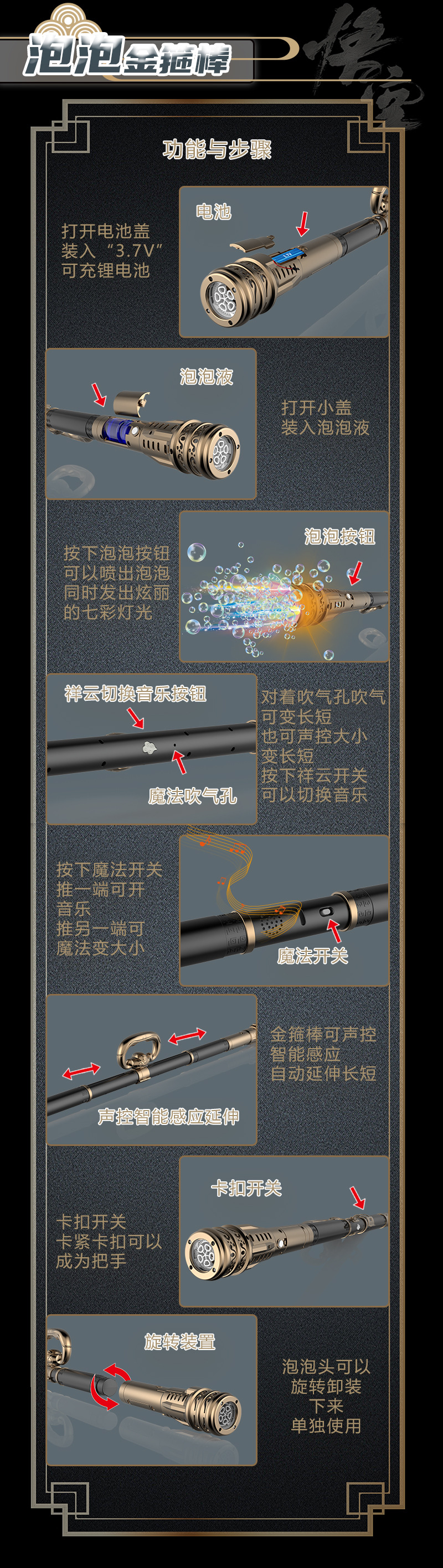 声控吹气伸缩如意金箍棒儿童玩具悟空齐天大圣魔法旋转泡泡