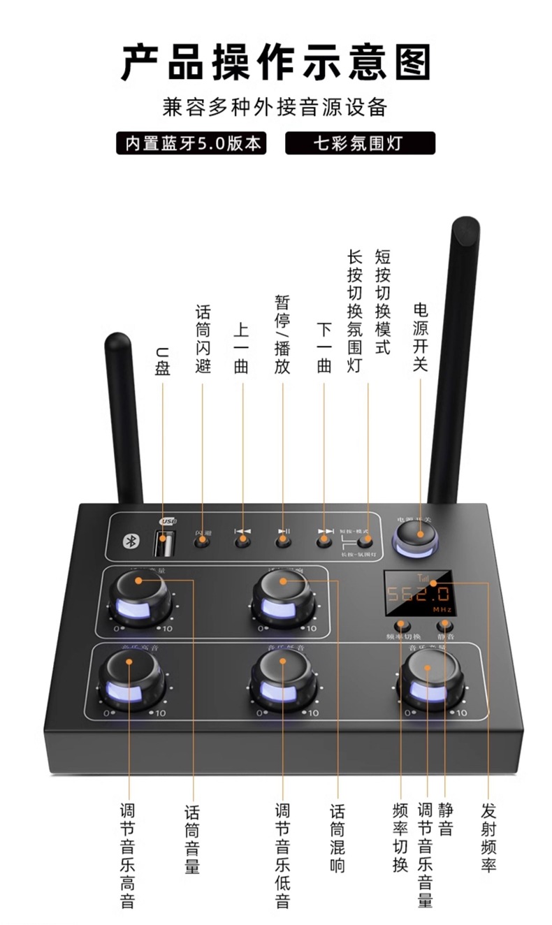 • 고급 컨트롤러 + 검정색 스피커 2개 + U10B 무선 마이크