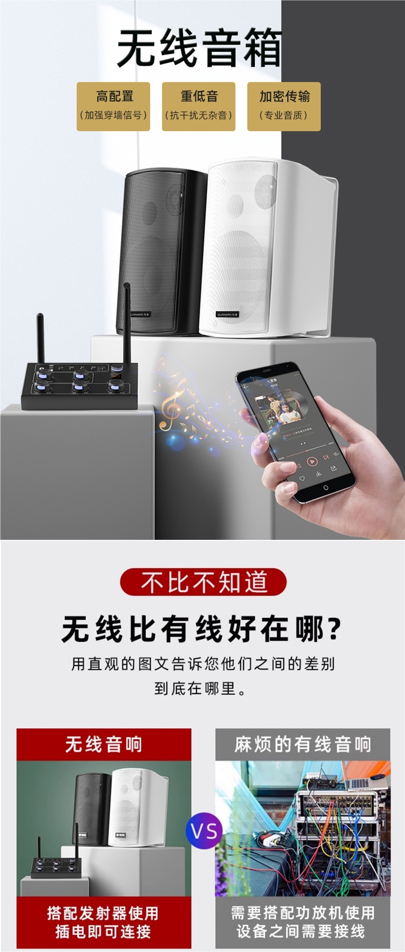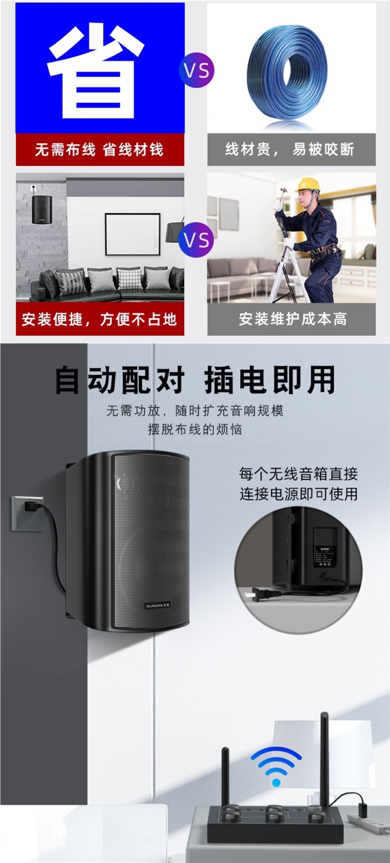 벽걸이 형 무선 오디오 샵 댄스 교실 레스토랑 체육관 회의실 상업용 스피커 조합 세트스토어 가기