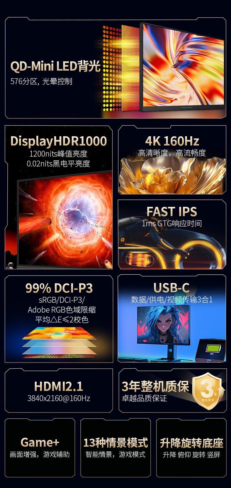 • P275MV PLUS 27인치 4K160Hz 듀얼 모드 1k 320hz MiniLED 스크린