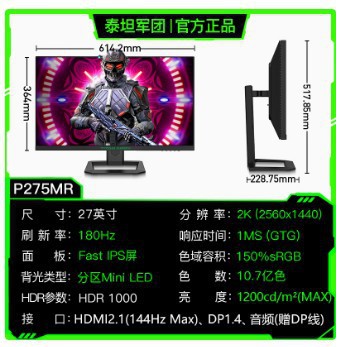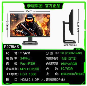 타이탄 군단 P275MV 27 "미니 LCD 화면 높은 브러시 게임 화면 4k240h