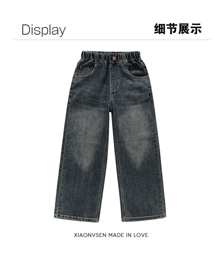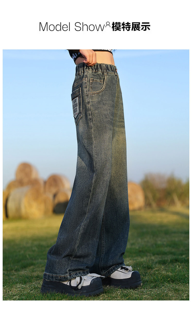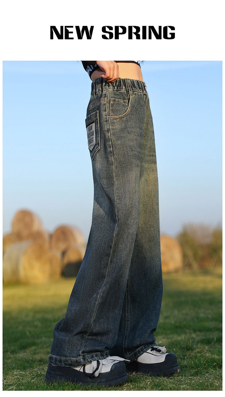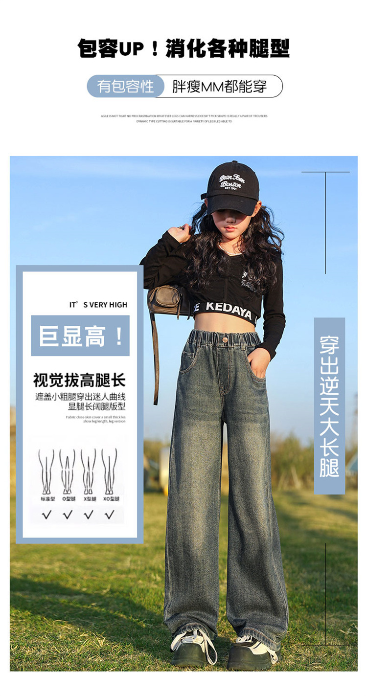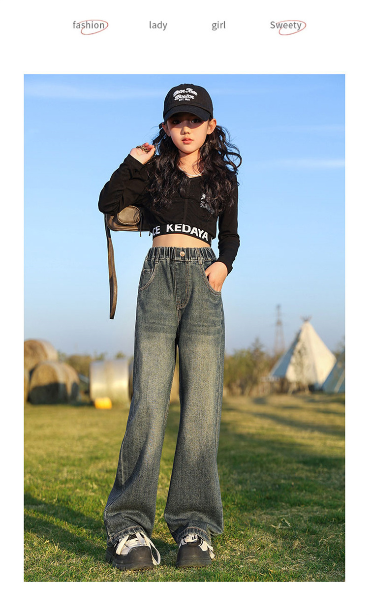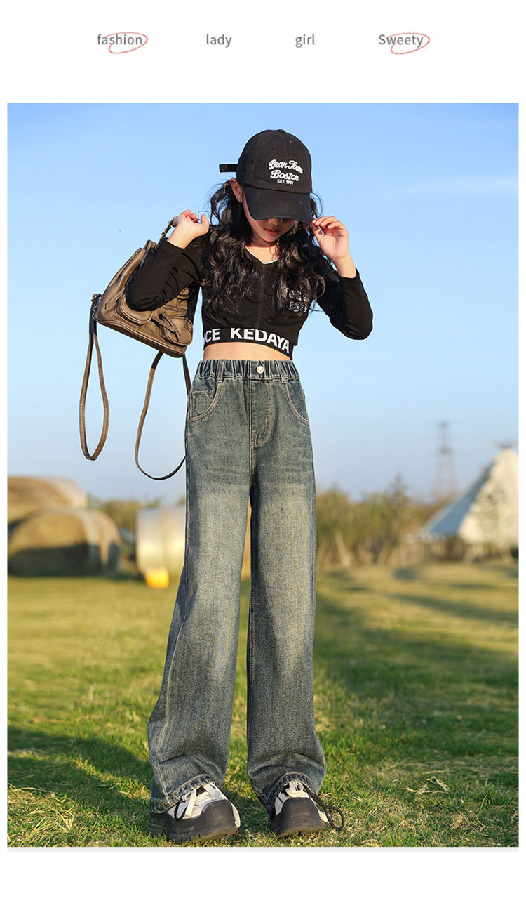 소녀 넓은 다리 청바지 봄과 가을 2025 새로운 패션 큰 어린이 스트레이트 다리 바지 세련된 소녀 봄 바지스토어 가기