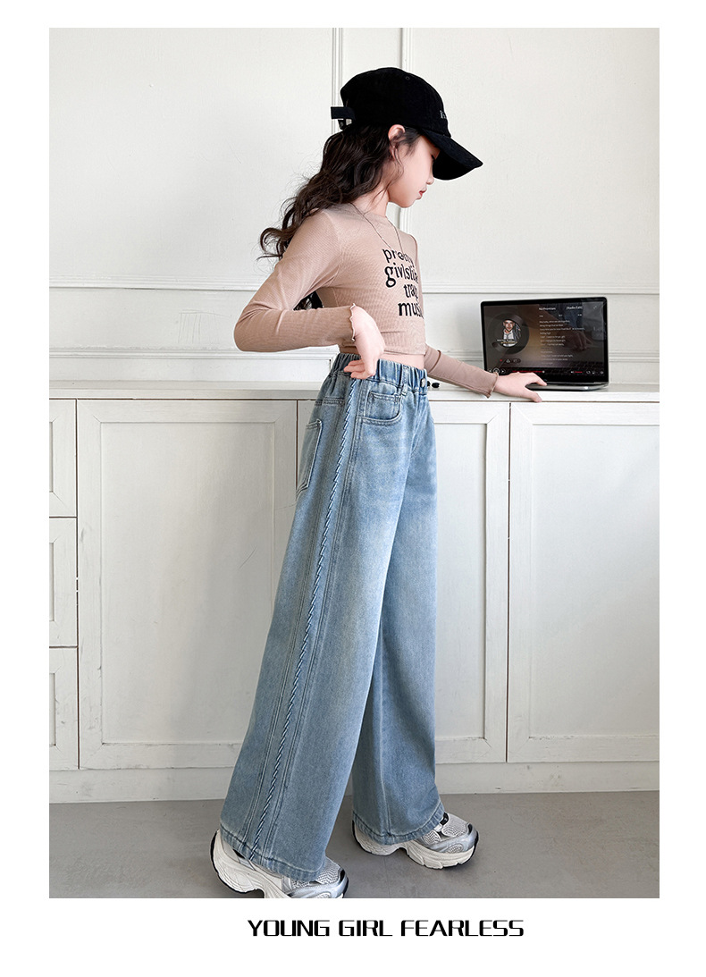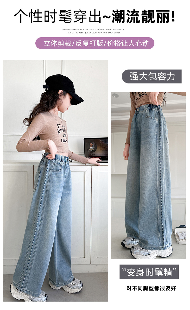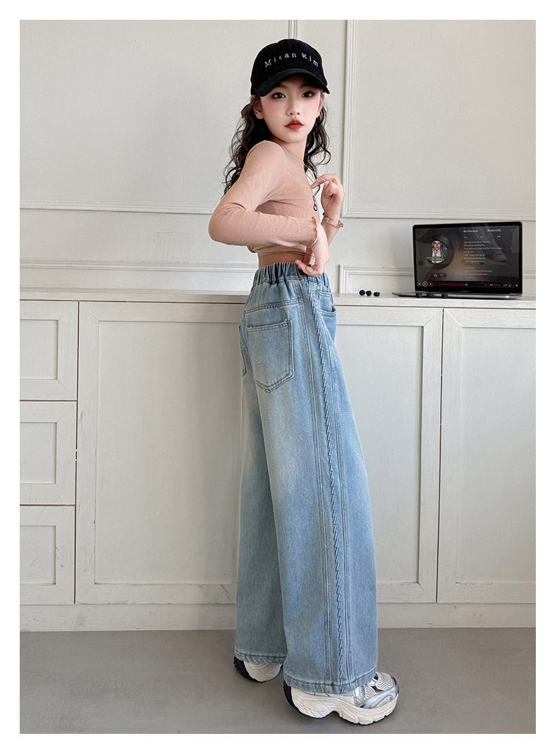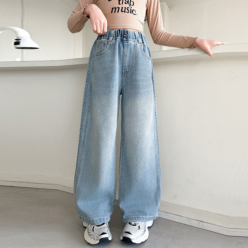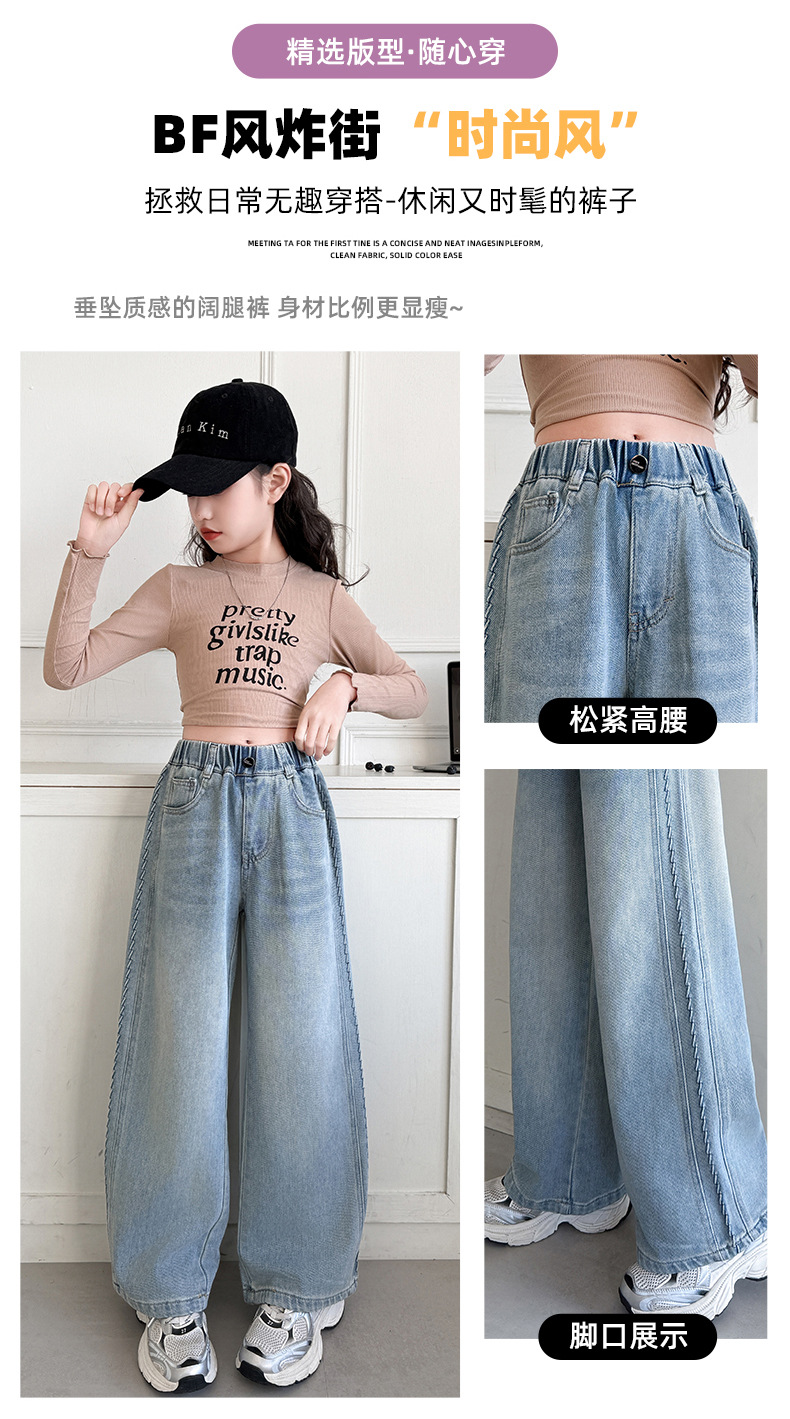 소녀 청바지 2025 새로운 스타일 트렌디 쿨 패션 높은 허리 새로운 넓은 다리 바지 청바지스토어 가기
