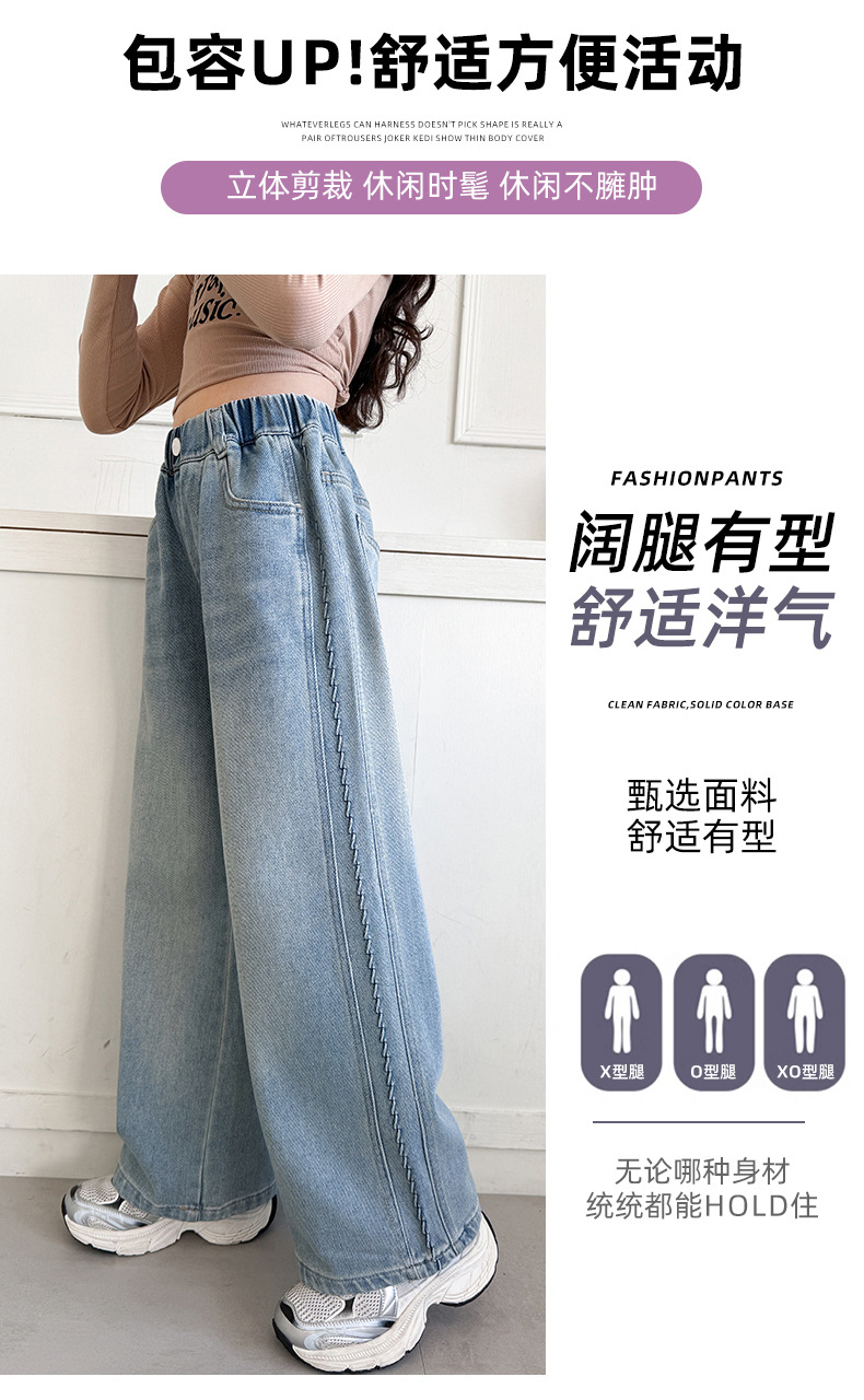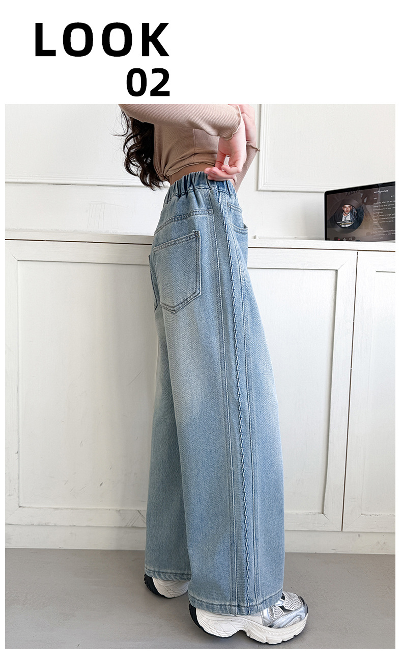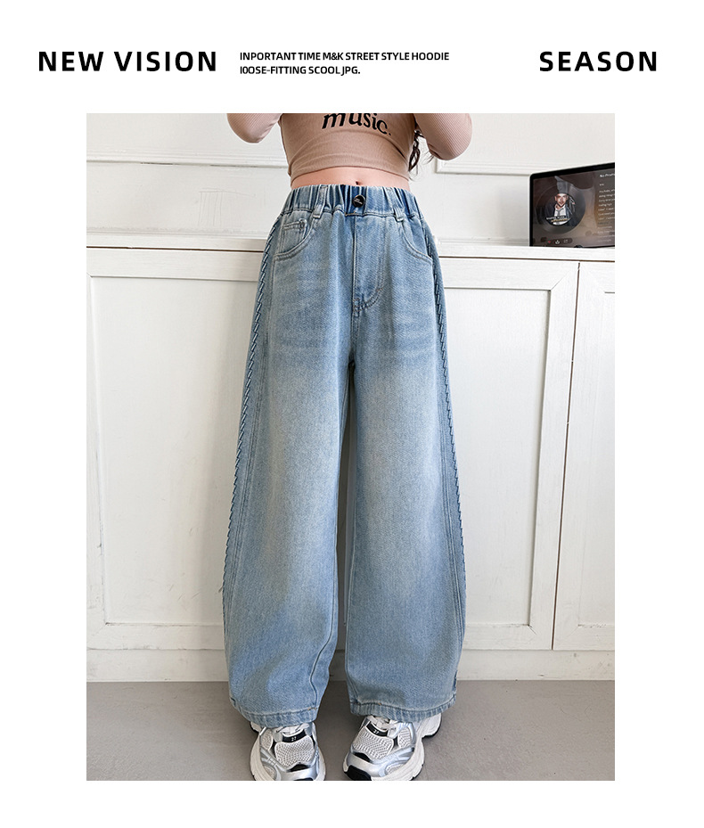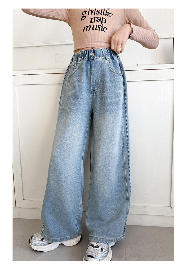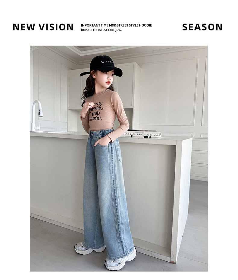 소녀 청바지 2025 새로운 스타일 트렌디 쿨 패션 높은 허리 새로운 넓은 다리 바지 청바지스토어 가기