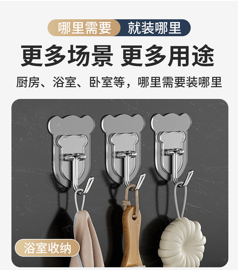 새로운 곰 후크 강한 접착 붙여 넣기 주방 가정용 원활한 벽 교수형 욕실 문 구멍스토어 가기
