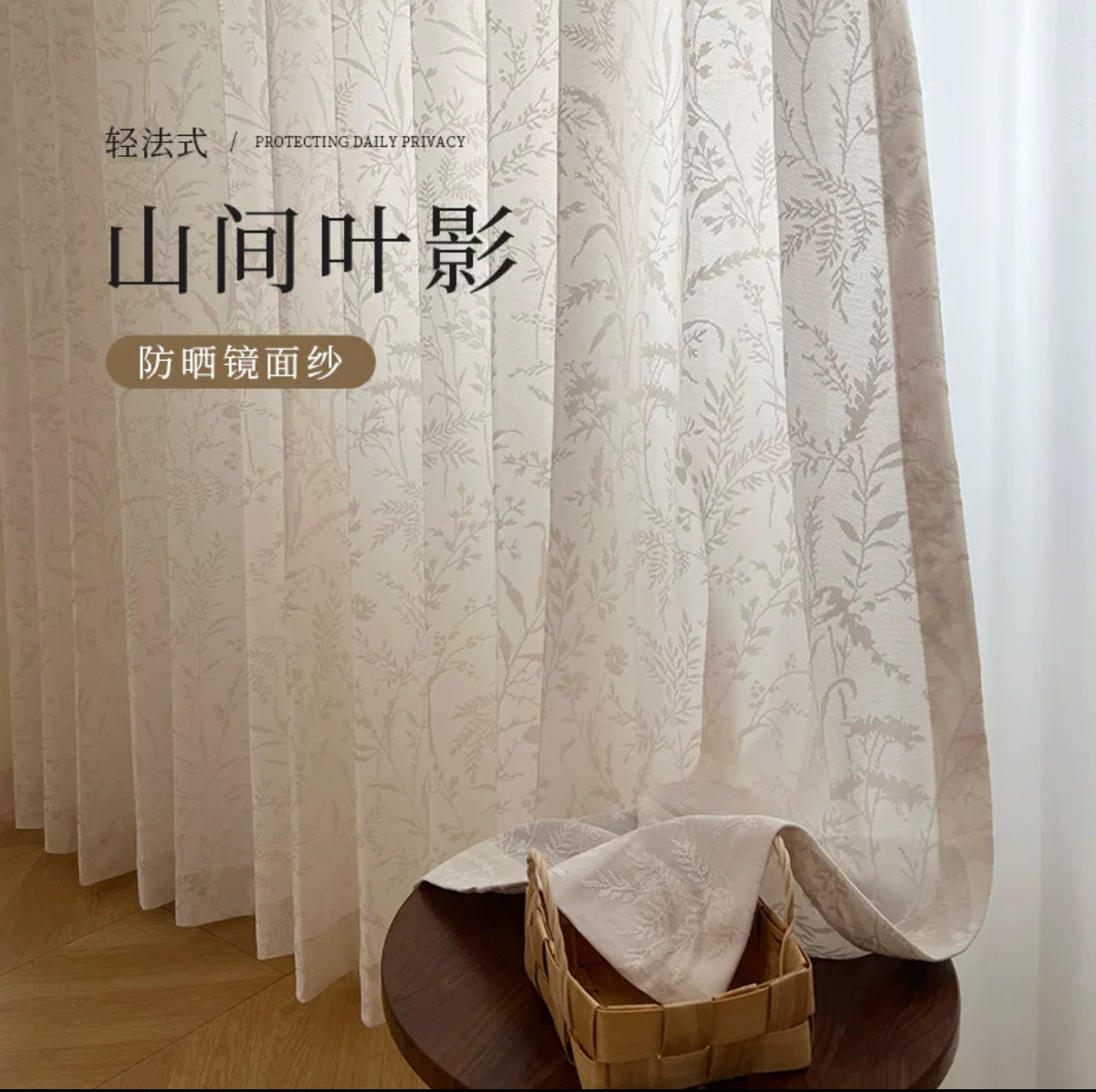 떠 다니는 밝은 잎 그림자 창 화면 자카드 구호 투명 불투명 한 거실 발코니 침실 프랑스 미국 흰색 베이지 색 원사스토어 가기