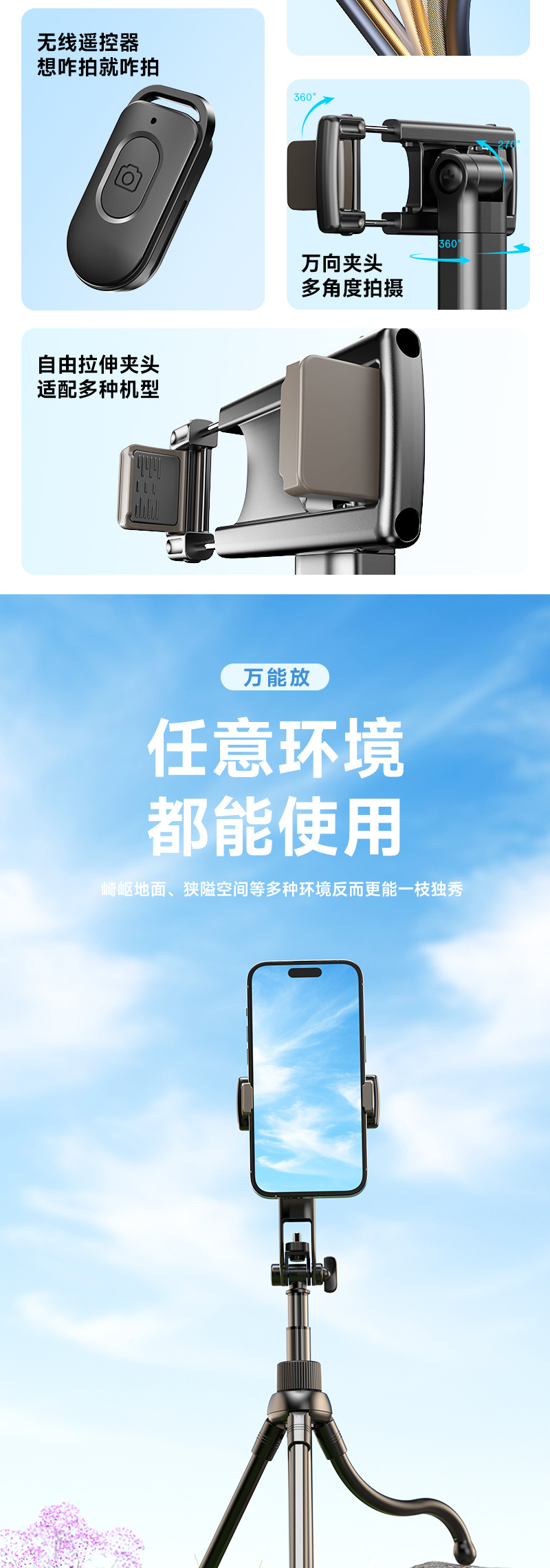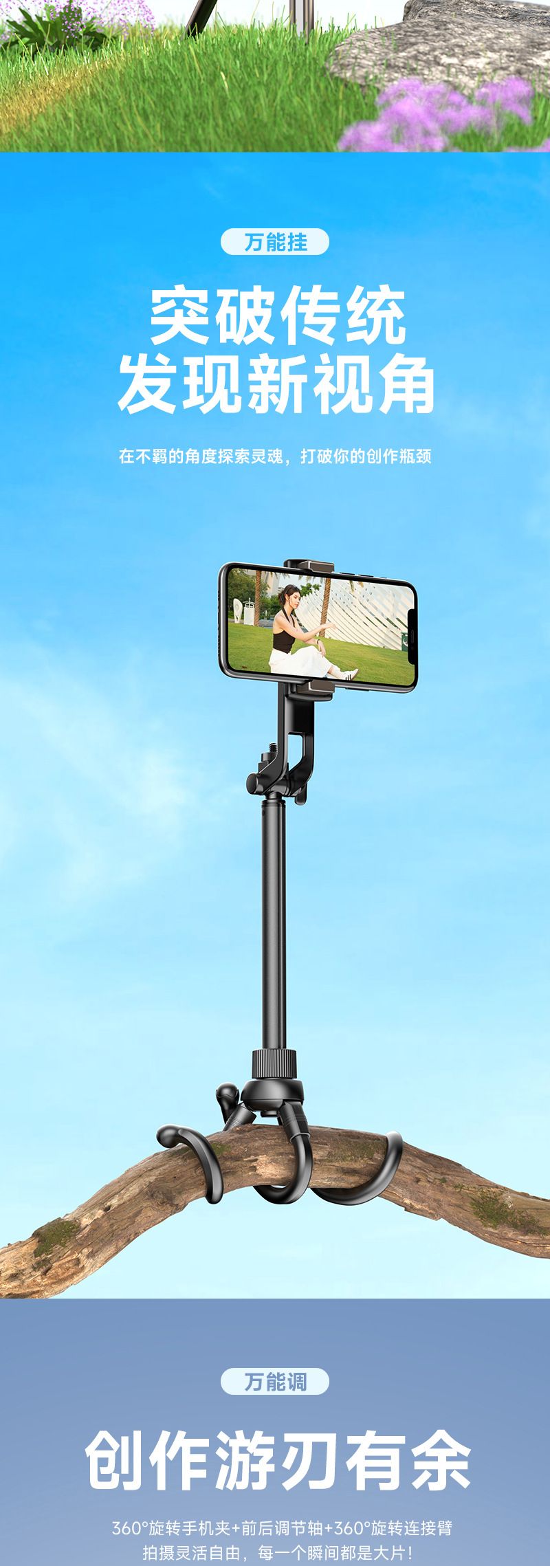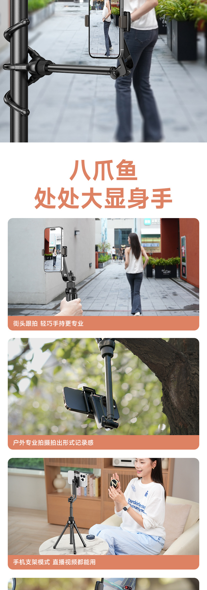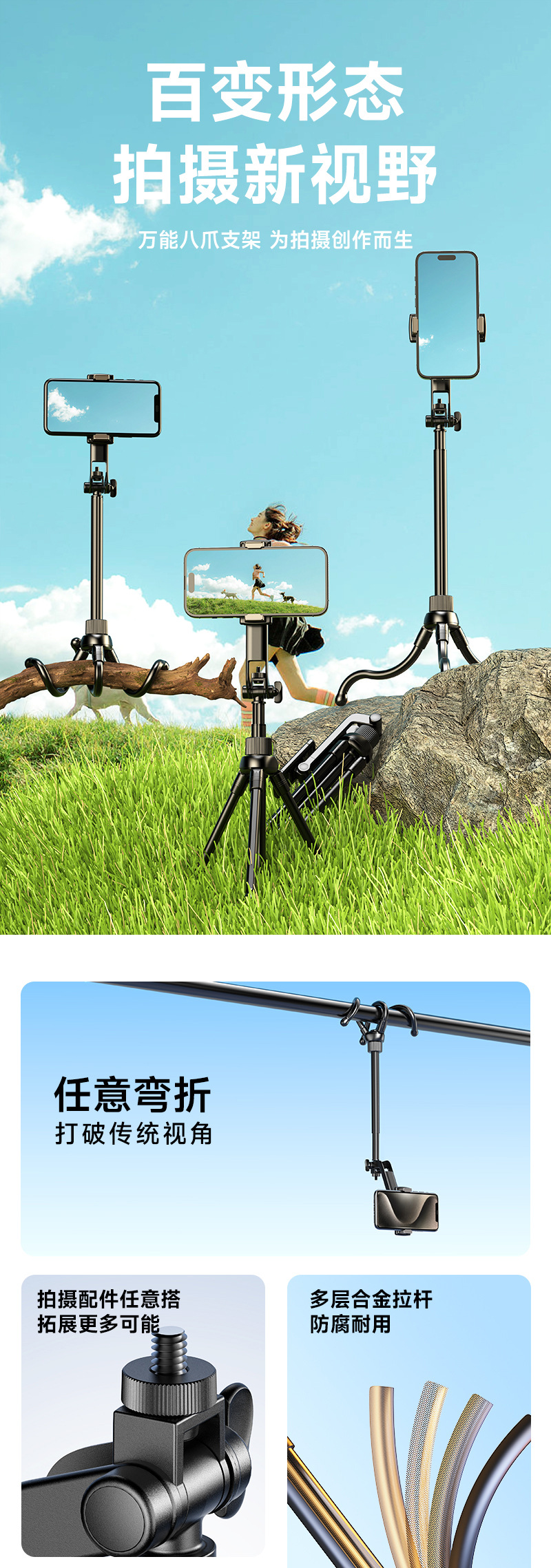 쌓인 제품 T100 8 발톱 부드러운 발 셀카 스틱 카메라 삼각대 휴대 전화 스탠드 라이브 카메라 블루투스 원격 제어 카메라