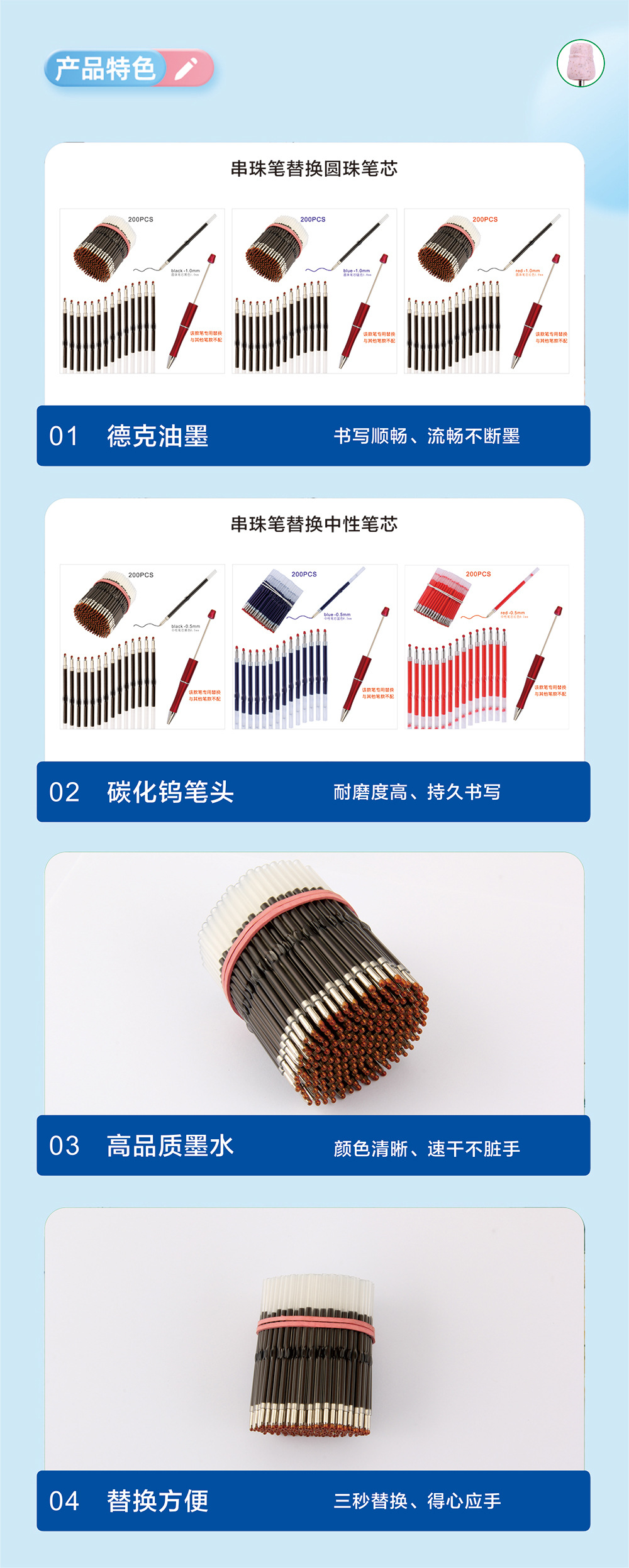 구슬 펜 특수 교체 터치 스크린 펜 젤 펜 터치 스크린 펜 볼펜 교체 코어 제조 업체 스트레이트 헤어