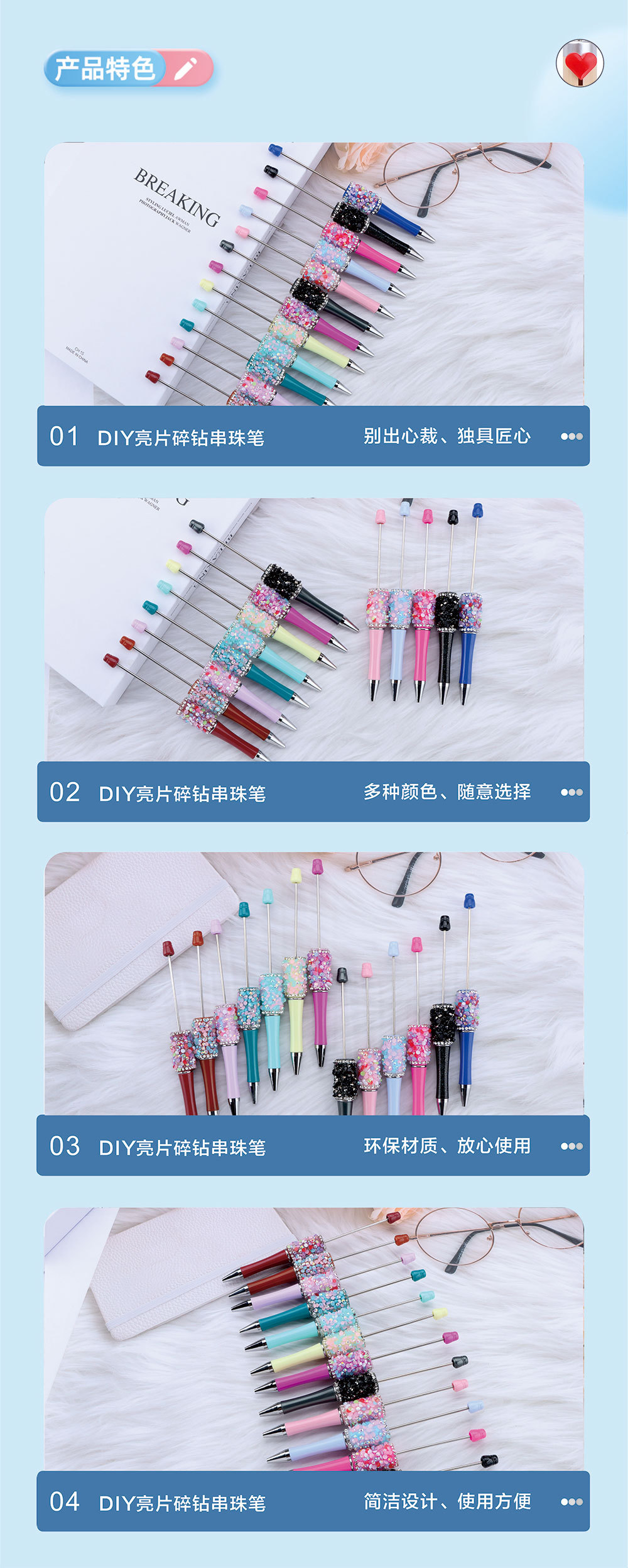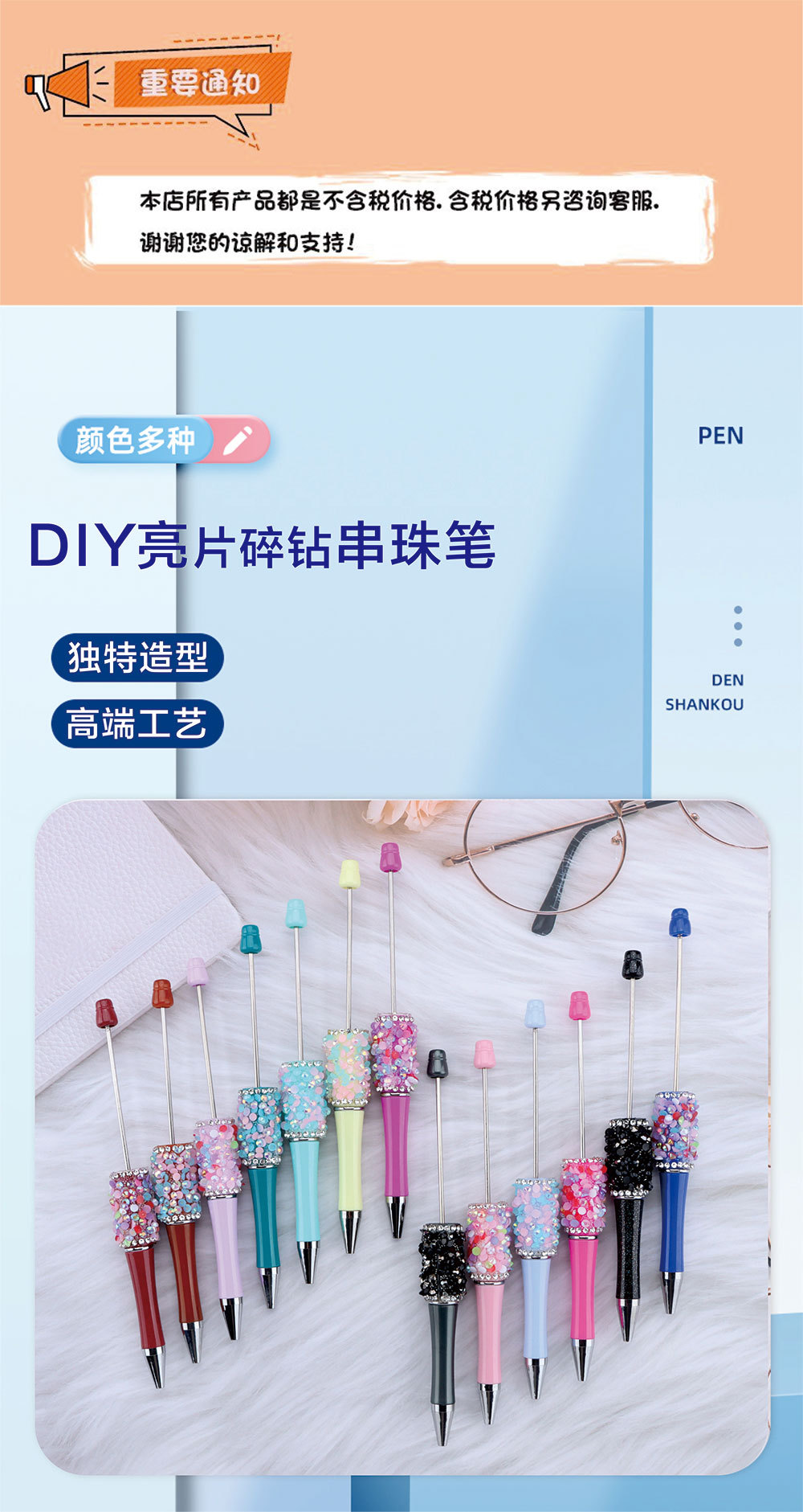 DIY 다이아몬드 스팽글 구슬 펜 귀여운 멀티 컬러 구슬 펜 손 스틱 드릴 선물 펜 도매스토어 가기