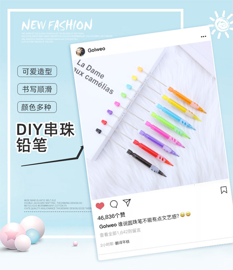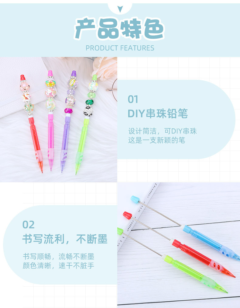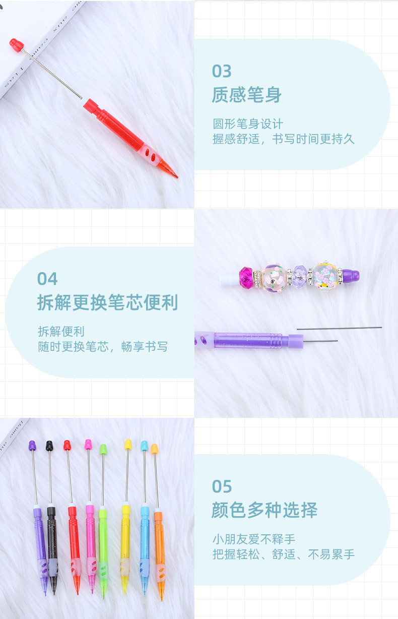창조적 인 diy 구슬 연필 성격 간단한 0.5mm 연속 코어 자동 연필 학생 필기 연필 도매스토어 가기