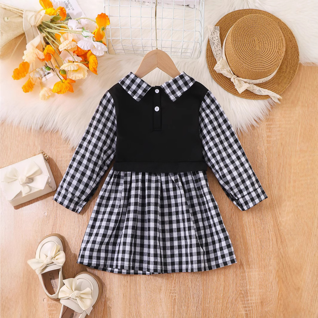 국경 간 대외 무역 유럽과 미국 봄과 가을 새로운 유행 소녀의 세트 격자 무늬 긴 소매 원피스 검은 조끼 투피스 세트