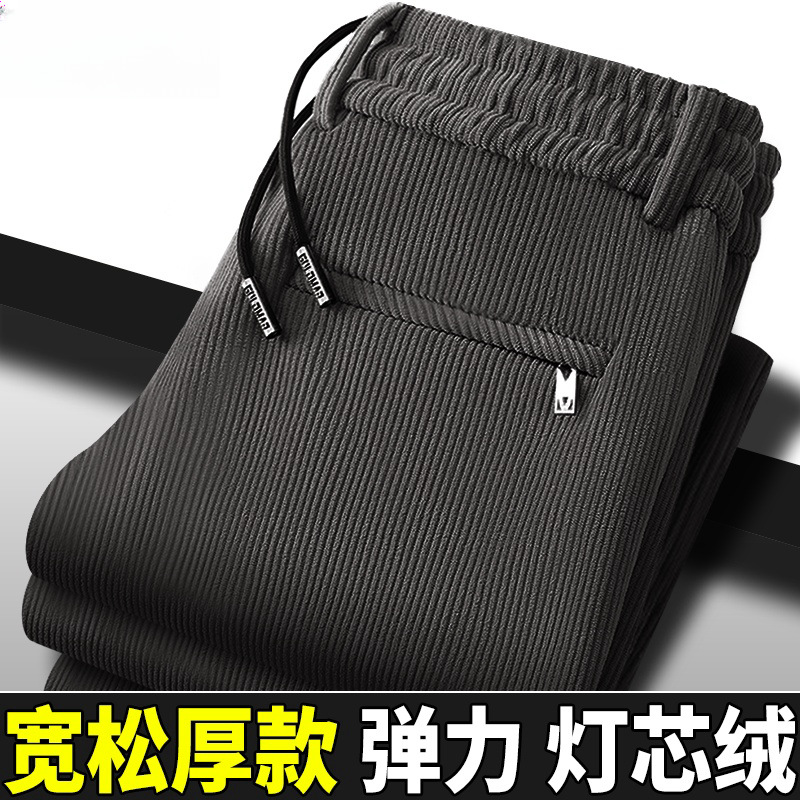 바지 남성용 먼지 방지 코듀로이 따뜻한 외부 착용 청소년 스트레이트 튜브 탄성 허리 비즈니스 캐주얼 바지 올 매치 트렌디스토어 가기