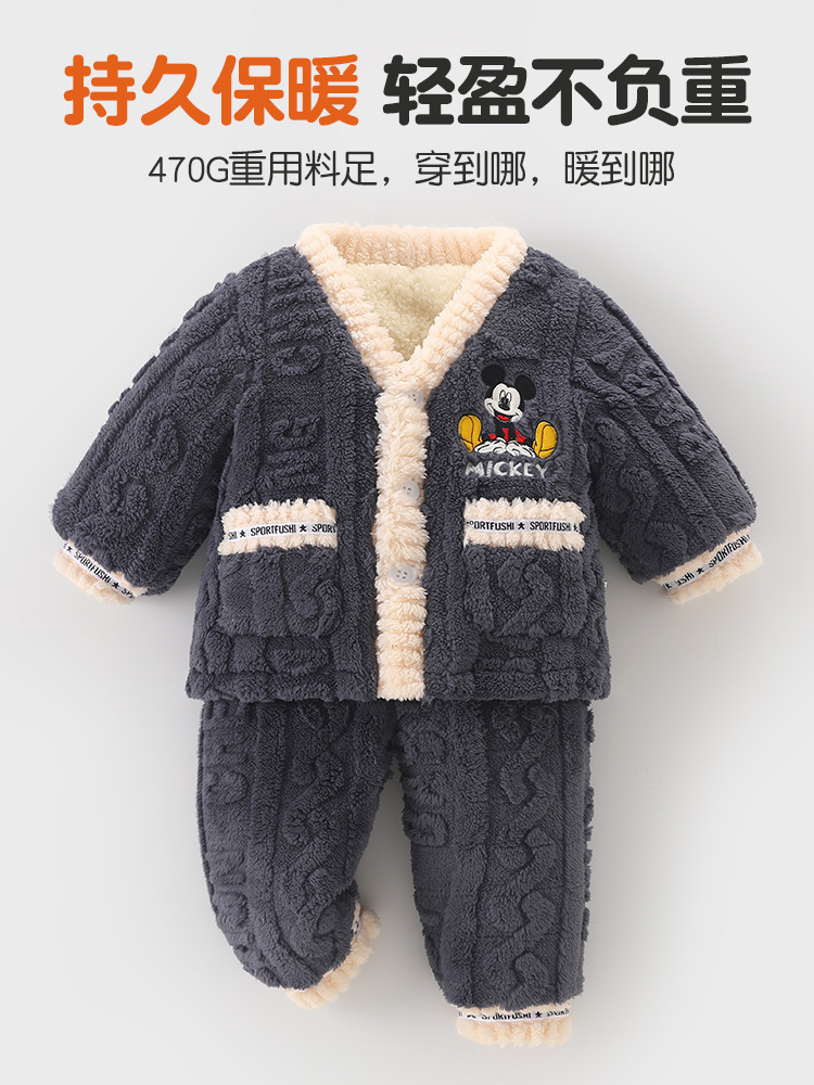 DUUDUU 겨울 소년의 면화 양모 패딩 따뜻한 아기 세트 투피스 홈 옷 어린이 잠옷