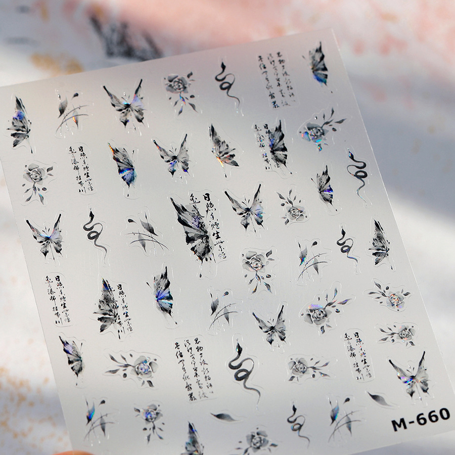 새로운 크래프트 아이언 스네이크 인 접착 네일 스티커 프로스트 네일 아트 스티커 브론징 시리즈 M-660 투명 유리