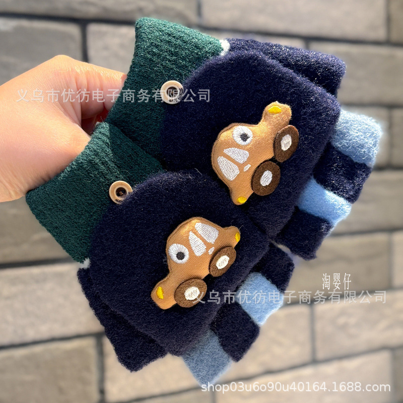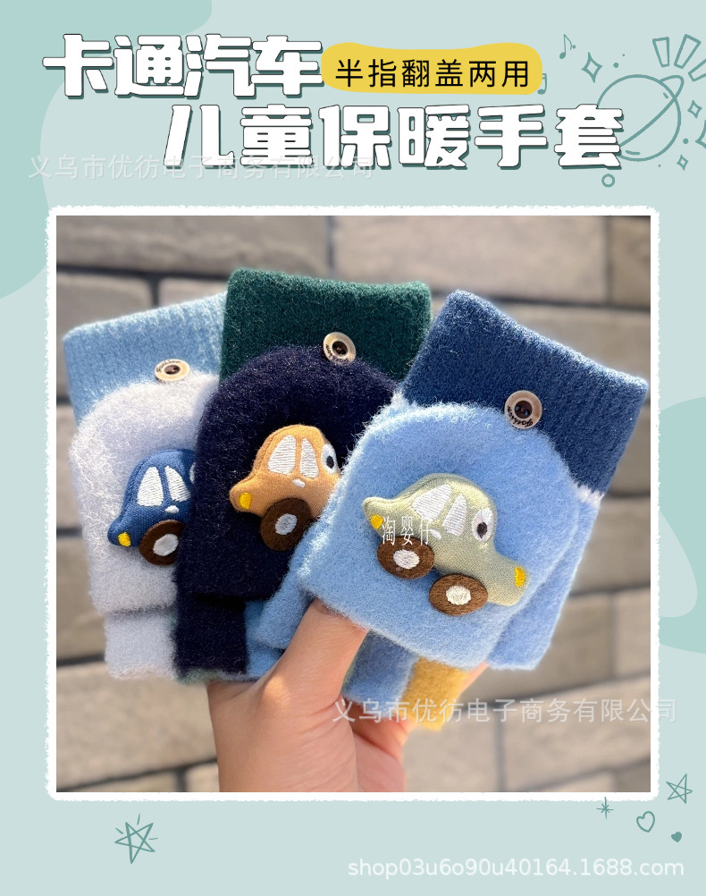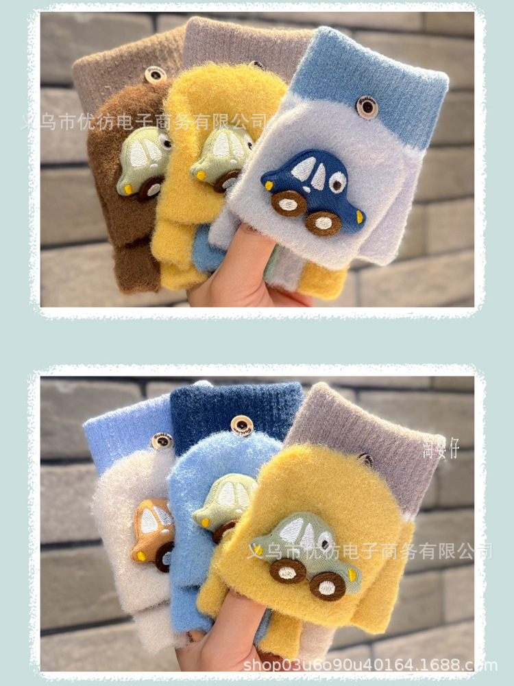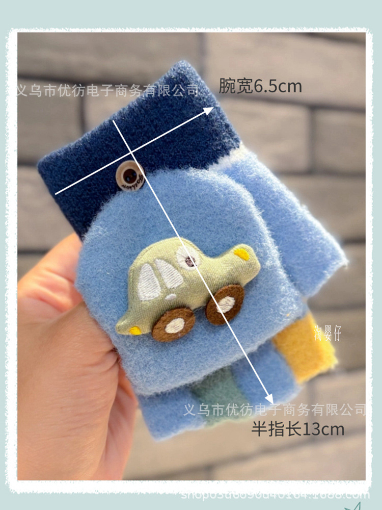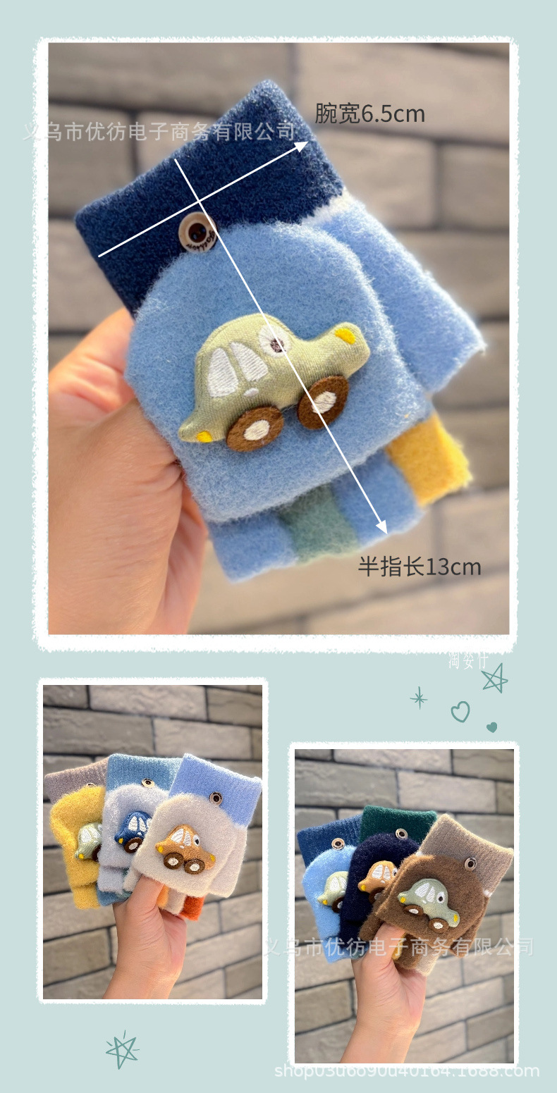 만화 자동차 어린이 장갑 겨울 귀여운 따뜻한 소년 아기 숙제 안티 냉동 핸드 플립 하프 핑거 커버