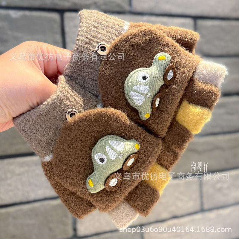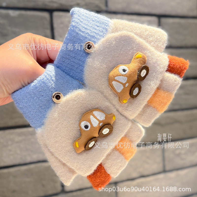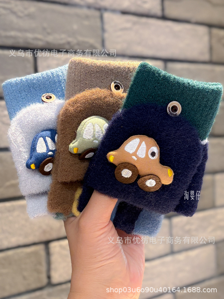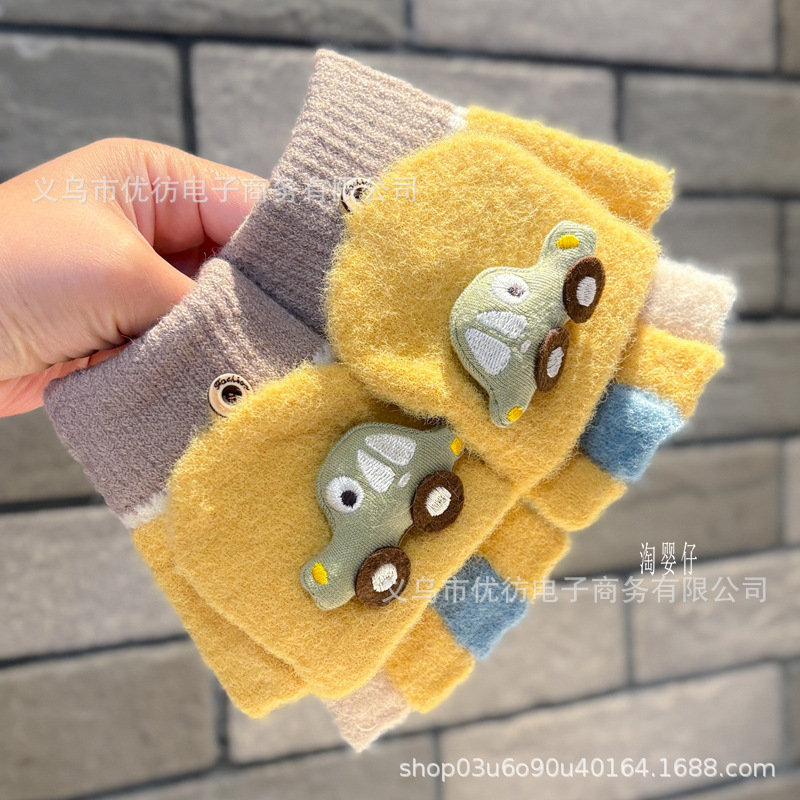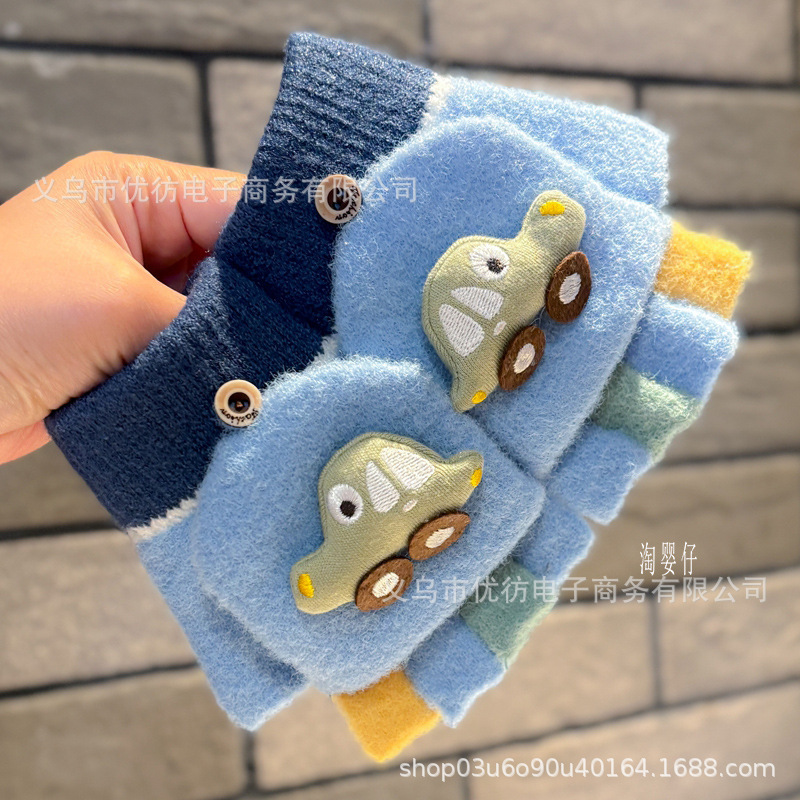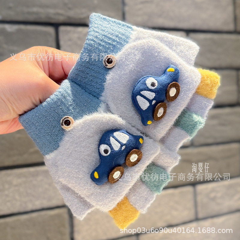 만화 자동차 어린이 장갑 겨울 귀여운 따뜻한 소년 아기 숙제 안티 냉동 핸드 플립 하프 핑거 커버