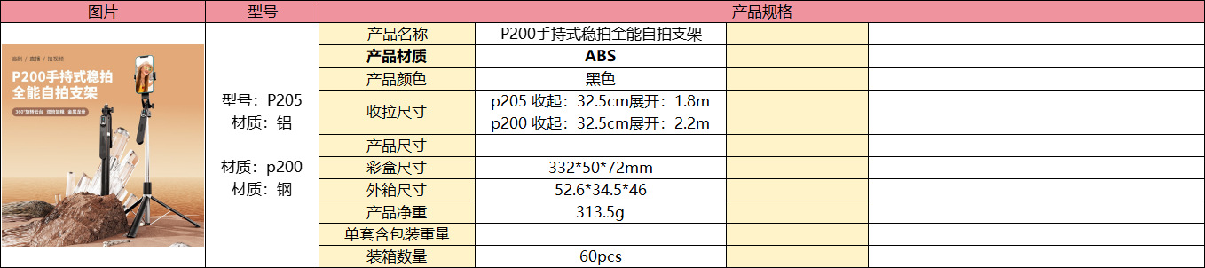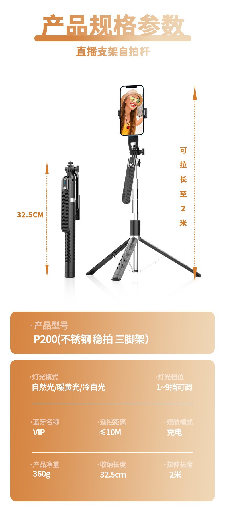 블루투스 원격 제어 휴대 전화 범용 셀카 스틱 재고 충전 라이브 스탠드와 국경 간 새로운 P200 얼굴