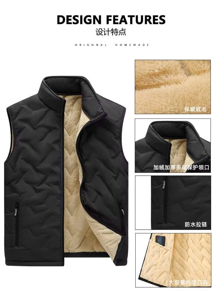 플러스 사이즈 조끼 남성용 가을과 겨울 기모 남성용 스탠드 칼라 따뜻한 코트 양고기 양털 냉장 내구성 조끼 조끼리